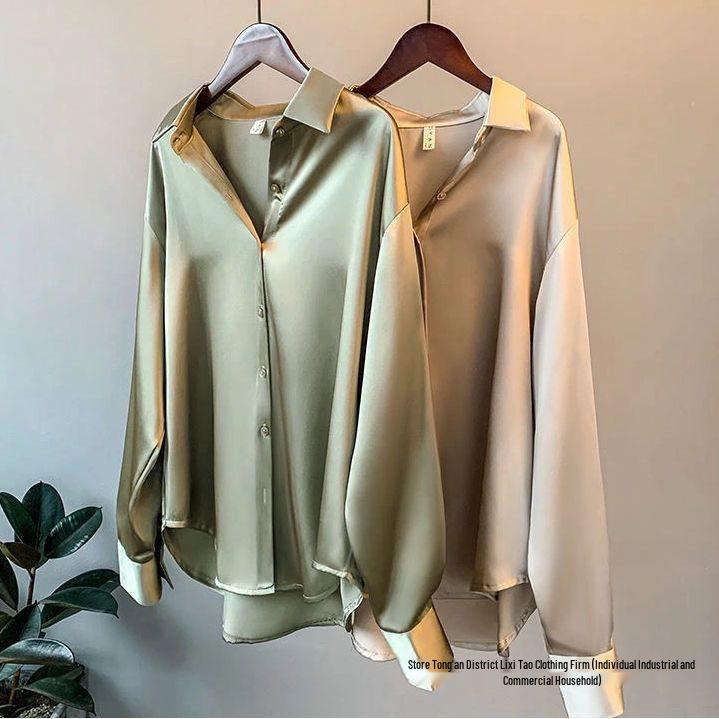 Женская ретро рубашка в гонконгском стиле из сатина - Универсальная с длинным рукавом для весны и осени (2023)
