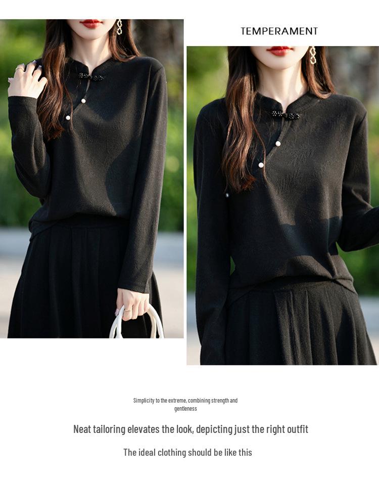 Представляем роскошное дополнение к вашему гардеробу: трикотажный свитер высокого класса, разработанный для сезона осень/зима 2024. Это изысканное изделие украшено уникальной китайской застежкой-лягушкой из жемчуга, добавляющей элегантный и традиционный штрих его современному стилю.. Изготовленный из материалов премиум-класса, свитер обеспечивает мягкую и удобную посадку со свободным силуэтом.. Оно имеет классический круглый вырез горловины и длинные рукава, что делает его идеальным для многослойной одежды в прохладное время года.. Оцените и комфорт, и изысканность этого потрясающего свитера, который прекрасно сочетает в себе элементы вневременного дизайна и современную моду.