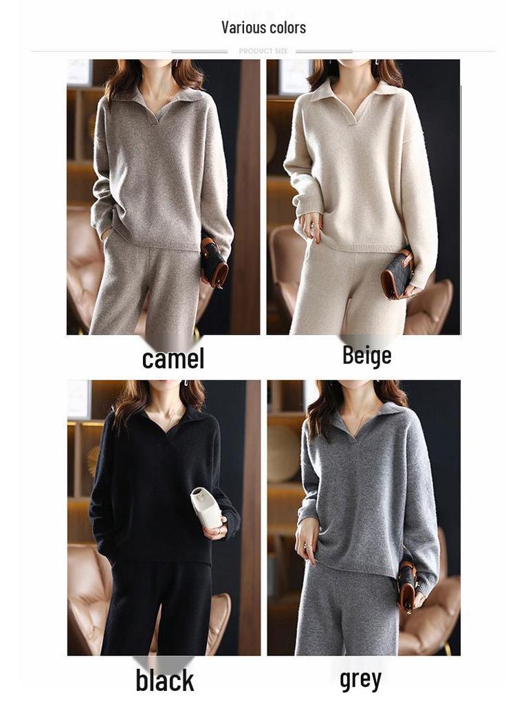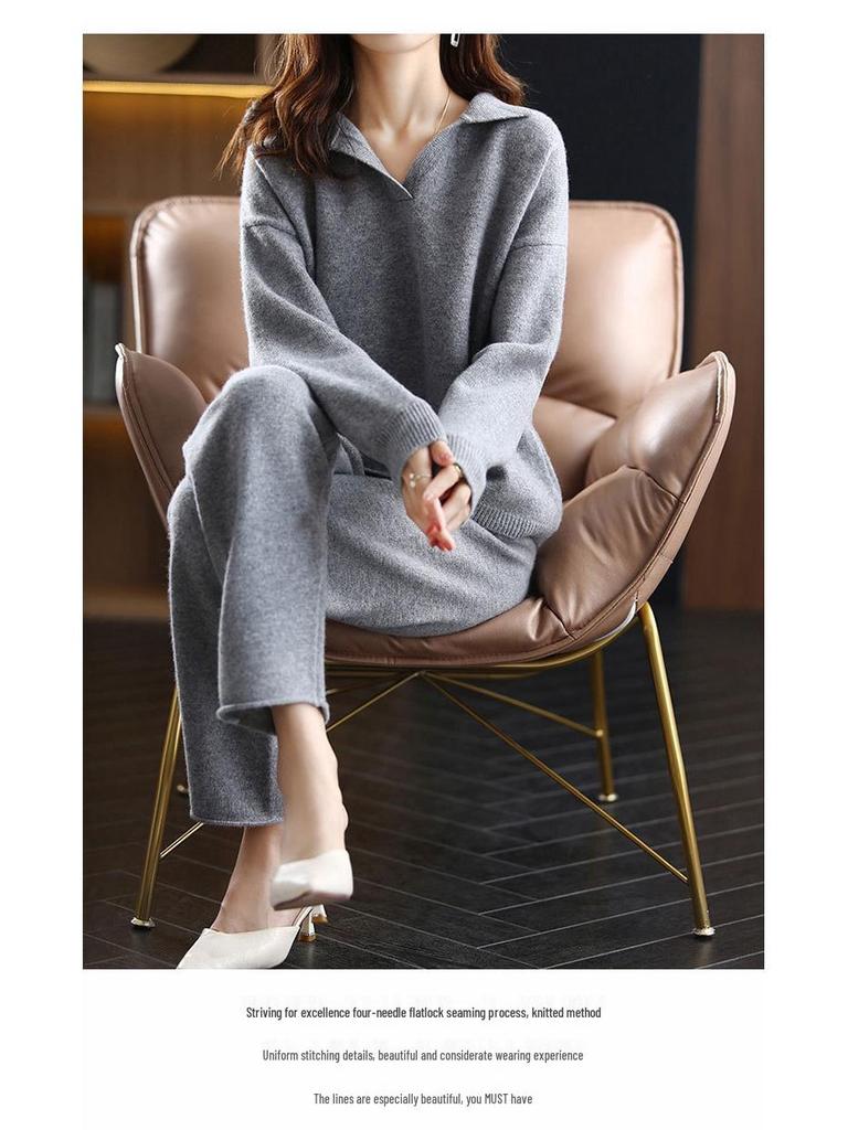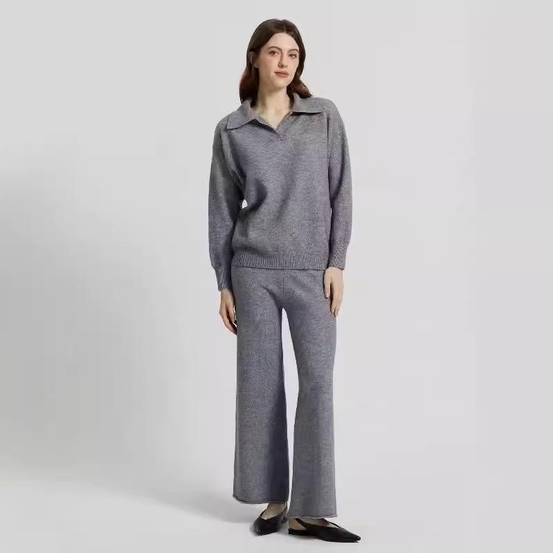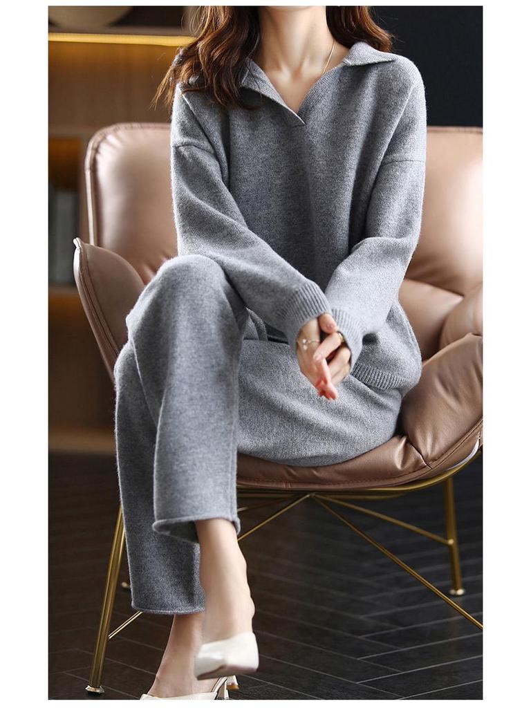 Женский комплект в европейском стиле на осень/зиму, состоящий из двух предметов: Брюки палаццо и трикотажный пуловер