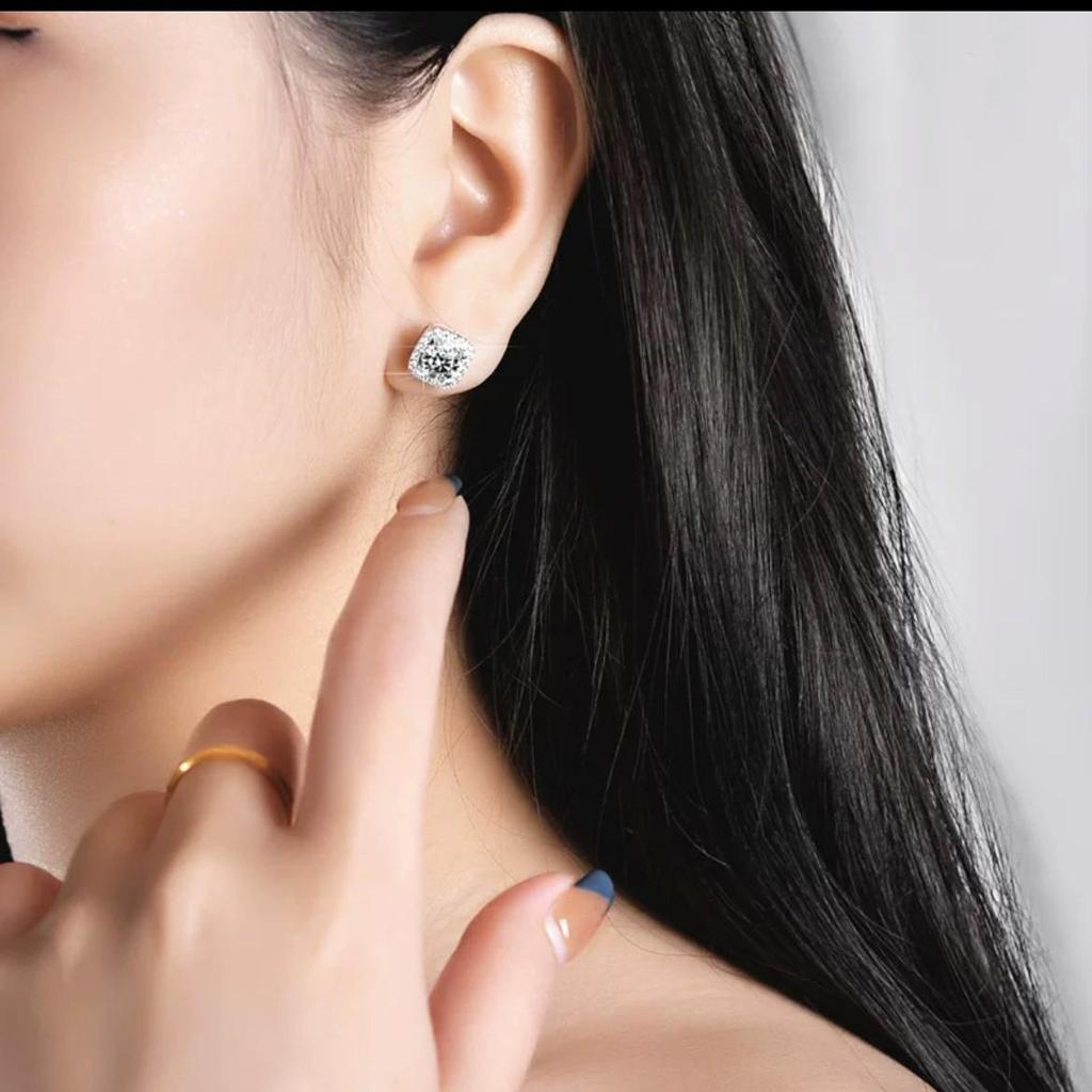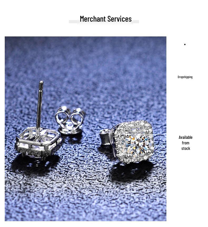 Серьги-пусеты из стерлингового серебра 925 пробы в форме квадрата с бриллиантом для женщин - Элегантные и универсальные, в европейско-американском рок-хип-хоп стиле