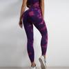 Комплект для йоги с высокой талией и принтом тай-дай: Бесшовные персиковые брюки для подтяжки бедер и жаккардовый спортивный жилет.