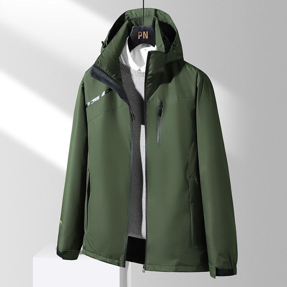 Эта мужская водонепроницаемая ветровка создана для непредсказуемой погоды весны и осени.. Изготовленный из прочного полиэстера, он обеспечивает отличную воздухопроницаемость и комфорт, что делает его идеальным как для повседневных прогулок, так и для более авантюрных занятий, таких как кемпинг и альпинизм.. Куртка имеет однотонный узор и капюшон для дополнительной защиты от непогоды.. Доступен в больших размерах, обеспечивает удобную посадку для всех.. Оставайтесь сухими и стильными с этой универсальной верхней одеждой.