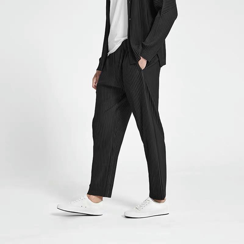 Оцените комфорт и стиль этих мужских плиссированных зауженных брюк длиной девять пунктов.. Изготовленные из высококачественного полиэстера, эти брюки обеспечивают легкую и дышащую посадку, идеально подходящую для любого случая.. Уникальные плиссе в стиле Мияке добавляют нотку изысканности, а зауженный дизайн обеспечивает современный силуэт.. Эти брюки с удобным поясом на кулиске обеспечивают регулируемую посадку, сочетая практичность с современным стилем.. Идеальные как для повседневной, так и для смарт-кэжуал обстановки, они обеспечивают изысканный вид с непревзойденным комфортом.