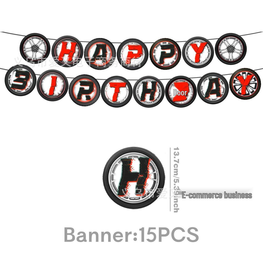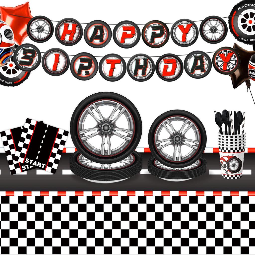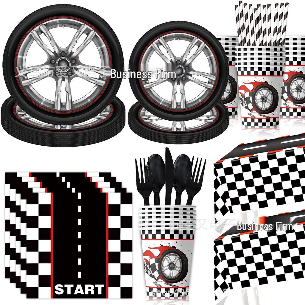 Набор посуды для дня рождения «Шины» в трансграничном стиле: Тарелки, Чашки, Салфетки, Баннеры, Спирали и Нож