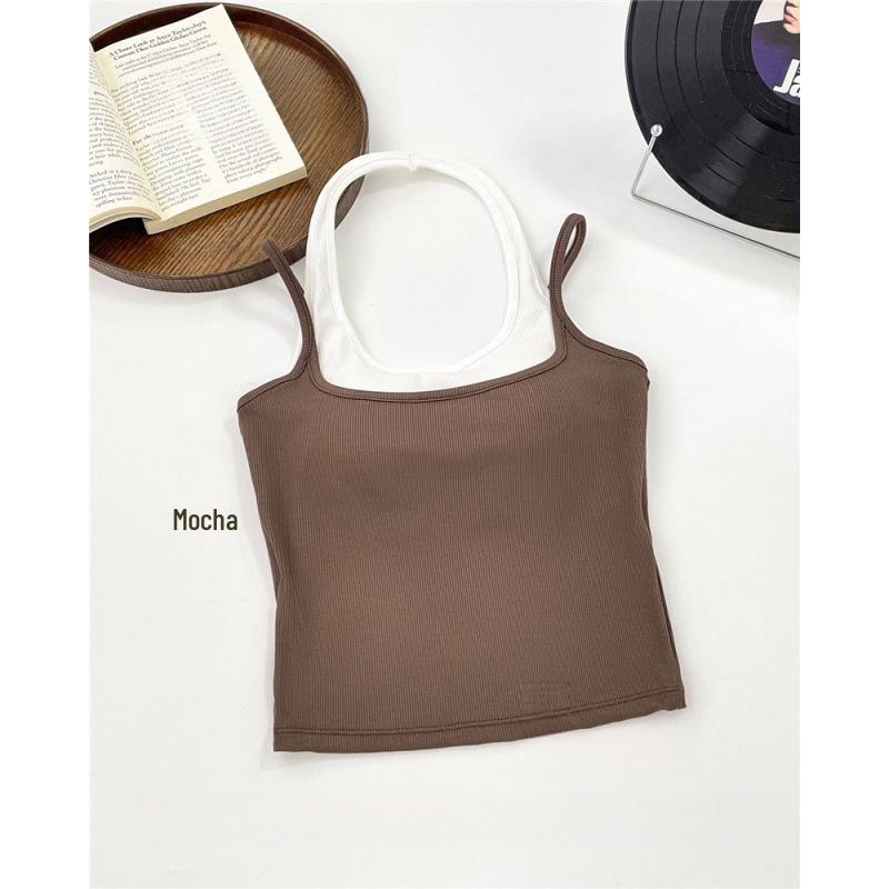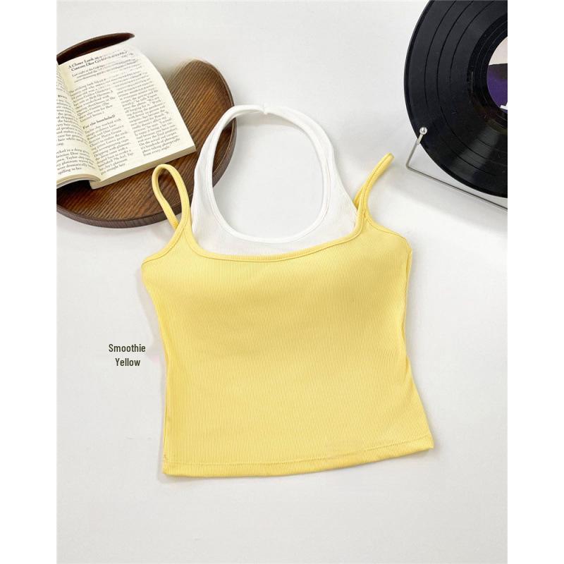 Модная футболка-майка с халтером, цветными блоками, приталенная, в стиле ретро