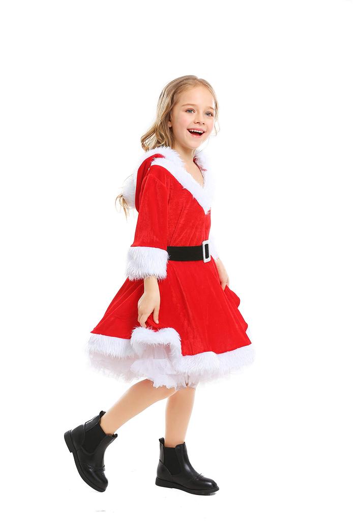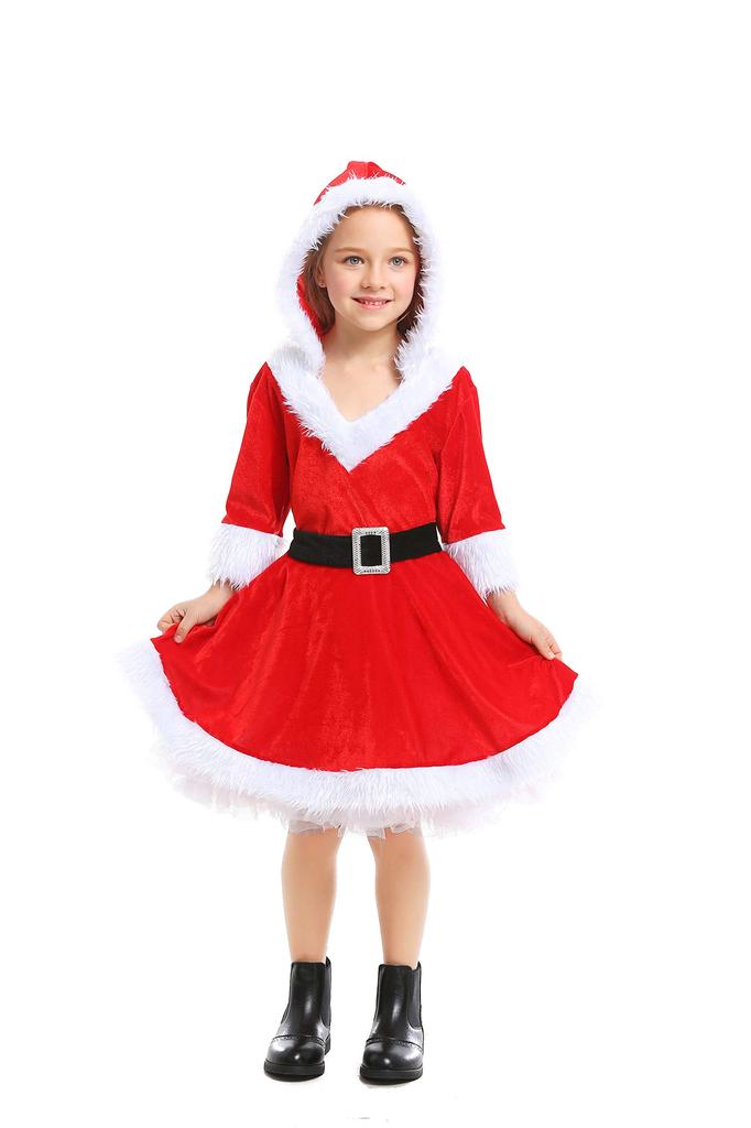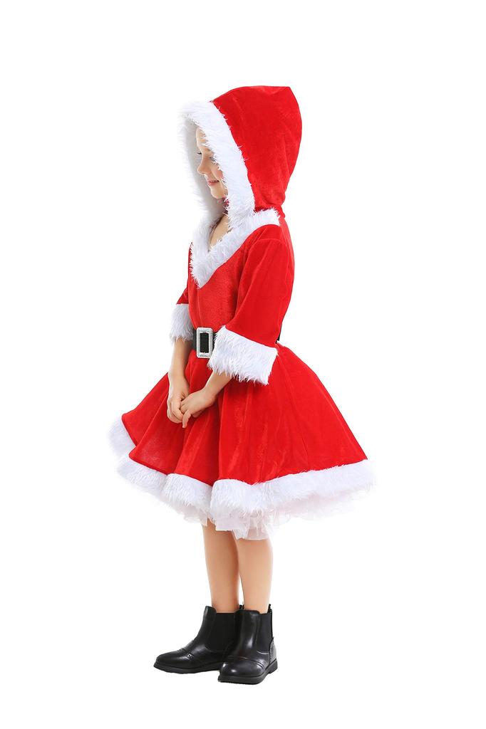 JUNDOMECY Santa Cosplay Costume for Cute Christmas Santa Claus Hooded Perfect for New Cultural and School Festivals L Girls, Costume, Outfit, Kids'