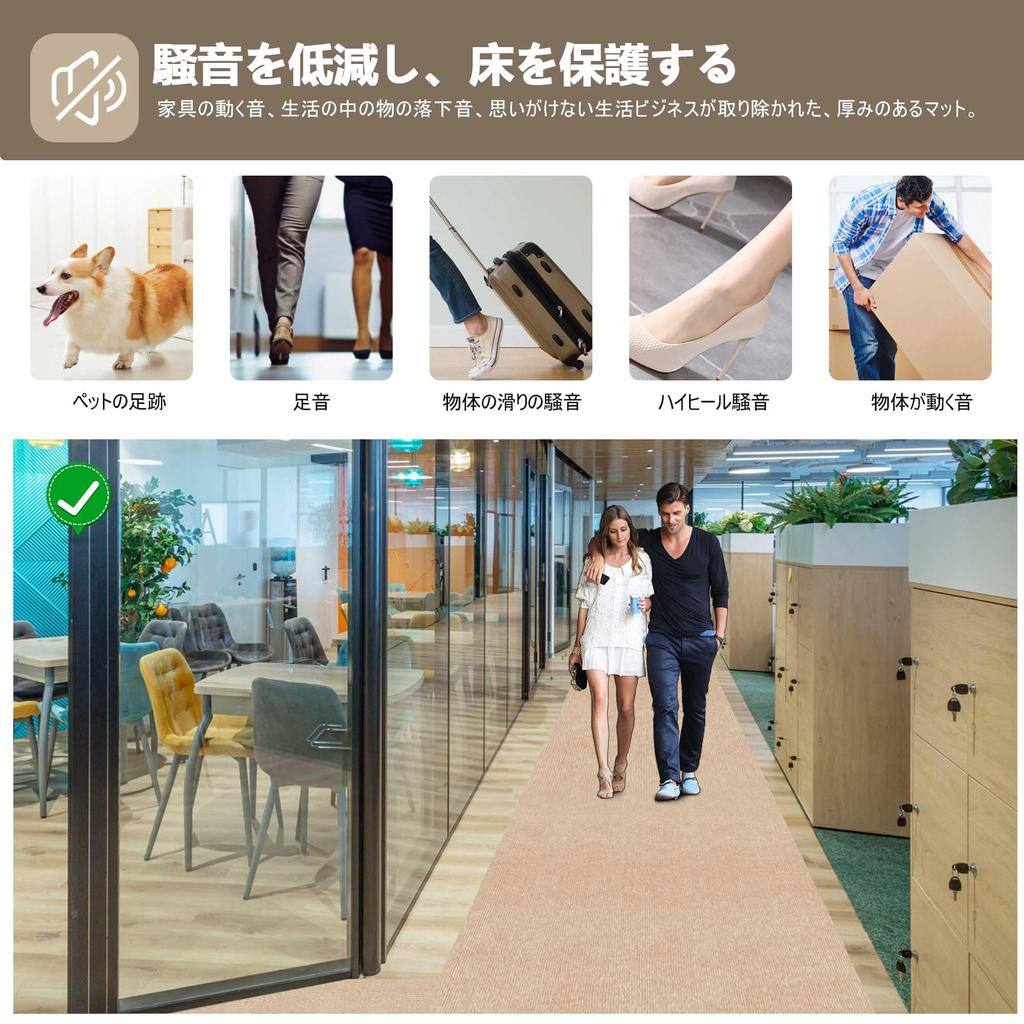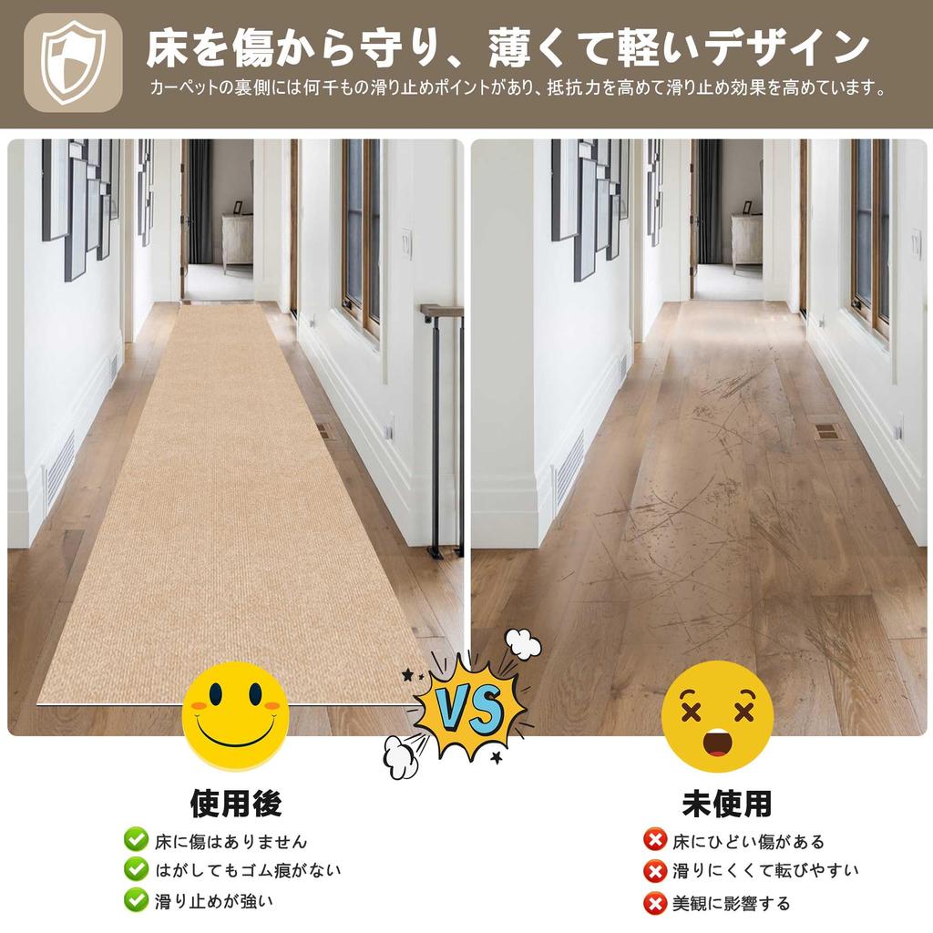 🔥【Noise and Scratch Prevention】The hallway mat is made of PU and polyester nonwoven fabric, providing excellent sound absorption and suitable for a variety of locations. It can absorb and reduce small everyday sounds, such as the sound of children running and playing, pet claws hitting the floor, chair rubbing, and game sounds. The self-suction material at the bottom of the hallway mat adheres firmly to the hallway, protecting your feet and blocking out cold floors in winter.