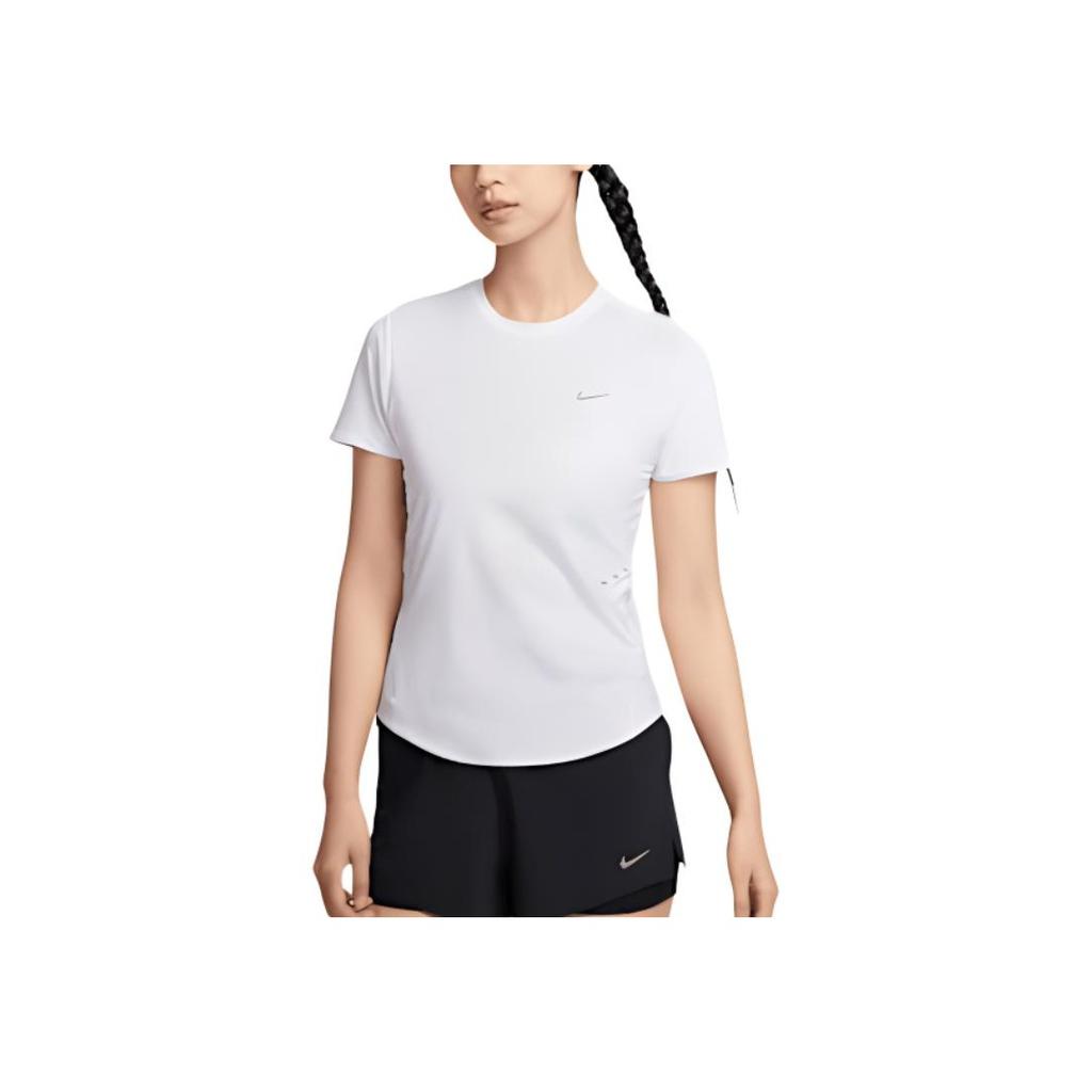 Nike Удобная Повседневная Футболка с Логотипом Бренда, Быстросохнущая, с Коротким Рукавом, Обычного Кроя, Женские Топы, Белая HM9699100