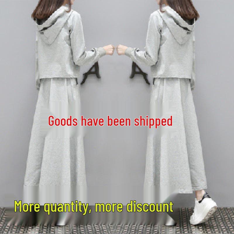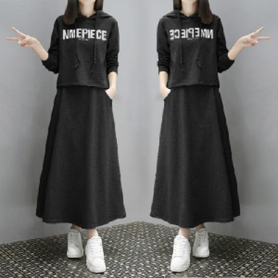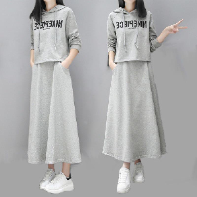 Европейский шикарный комплект-двойка Весна/Осень: Длинный свитшот и юбка - Повседневная корейская мода для женщин