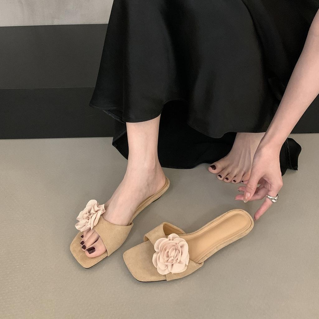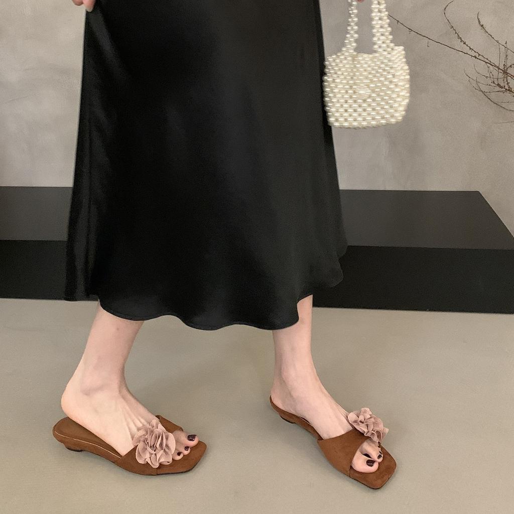 Корейская версия шлепанцев на танкетке с открытым носком для женской летней носки 2025 новый цветочный декор французские красивые прохладные шлепанцы