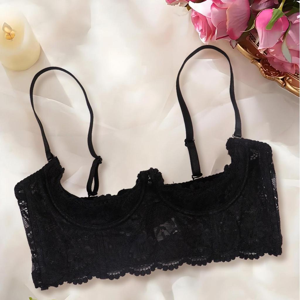 Соблазнительный кружевной комплект бюстгальтера полукубок: Ультратонкое белье с боковым покрытием