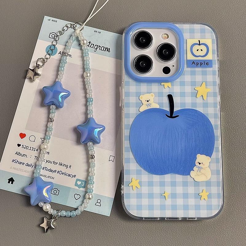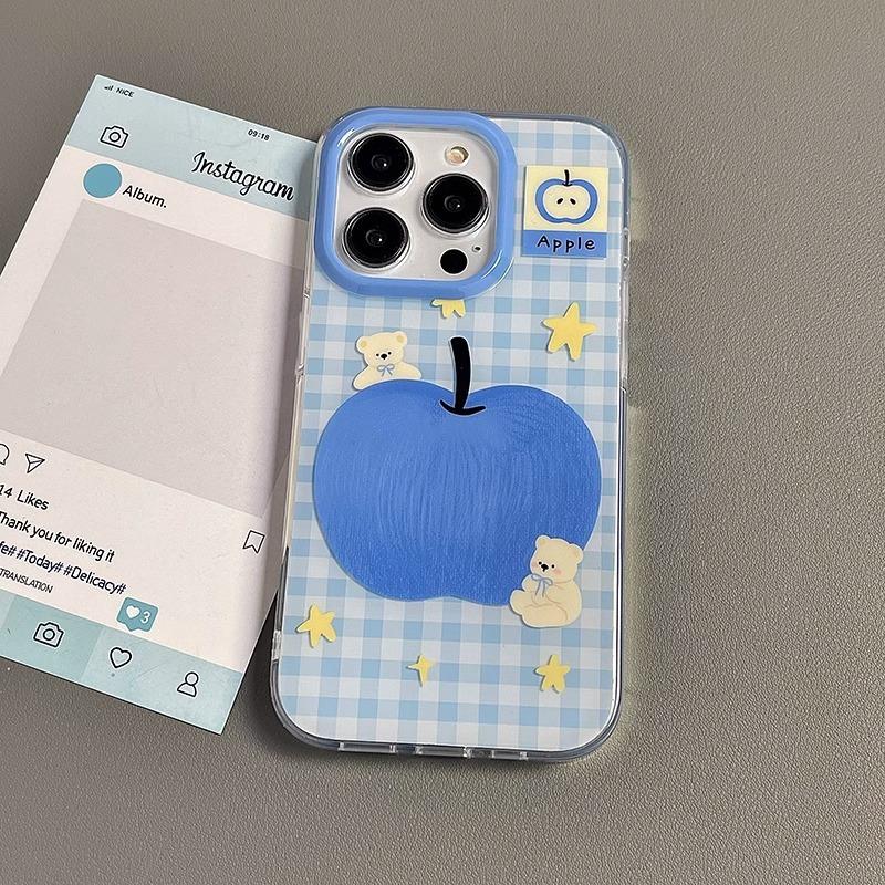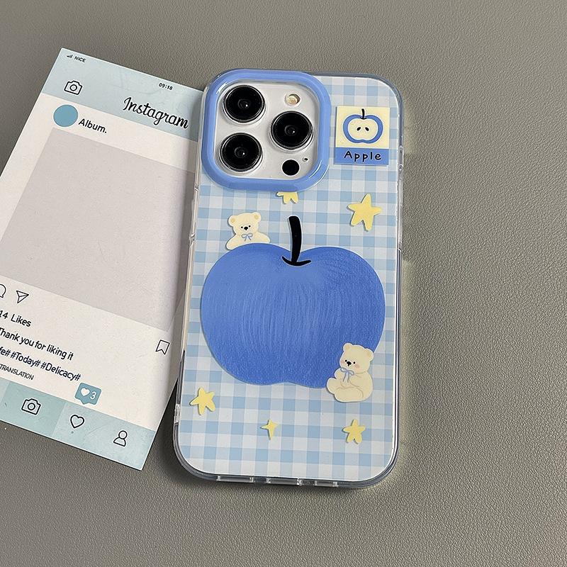 Blue Apple Bear Подходящий чехол для мобильного телефона Apple 16pro Новый IPhone15promax Мультяшный 13 Личность 17