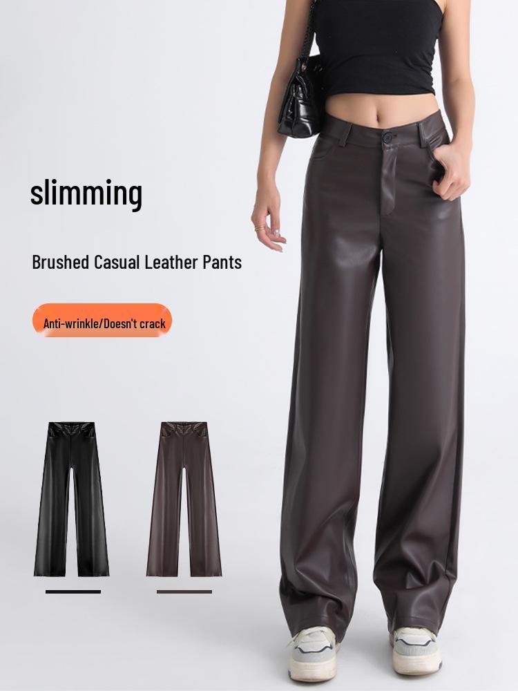 Женские брюки с высокой посадкой из ПУ кожи с широкими штанинами для осени и зимы — купить товар онлайн с бесплатной доставкой по всему миру!