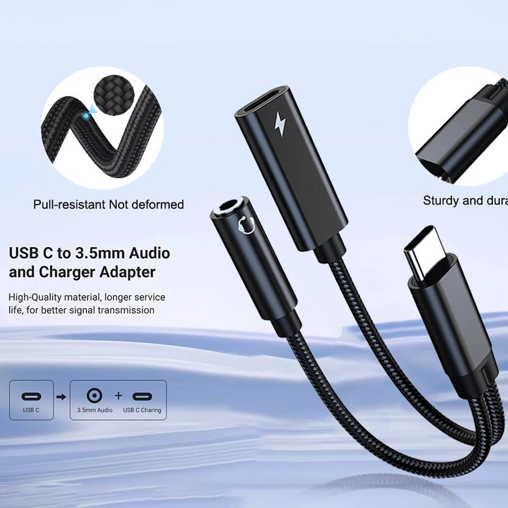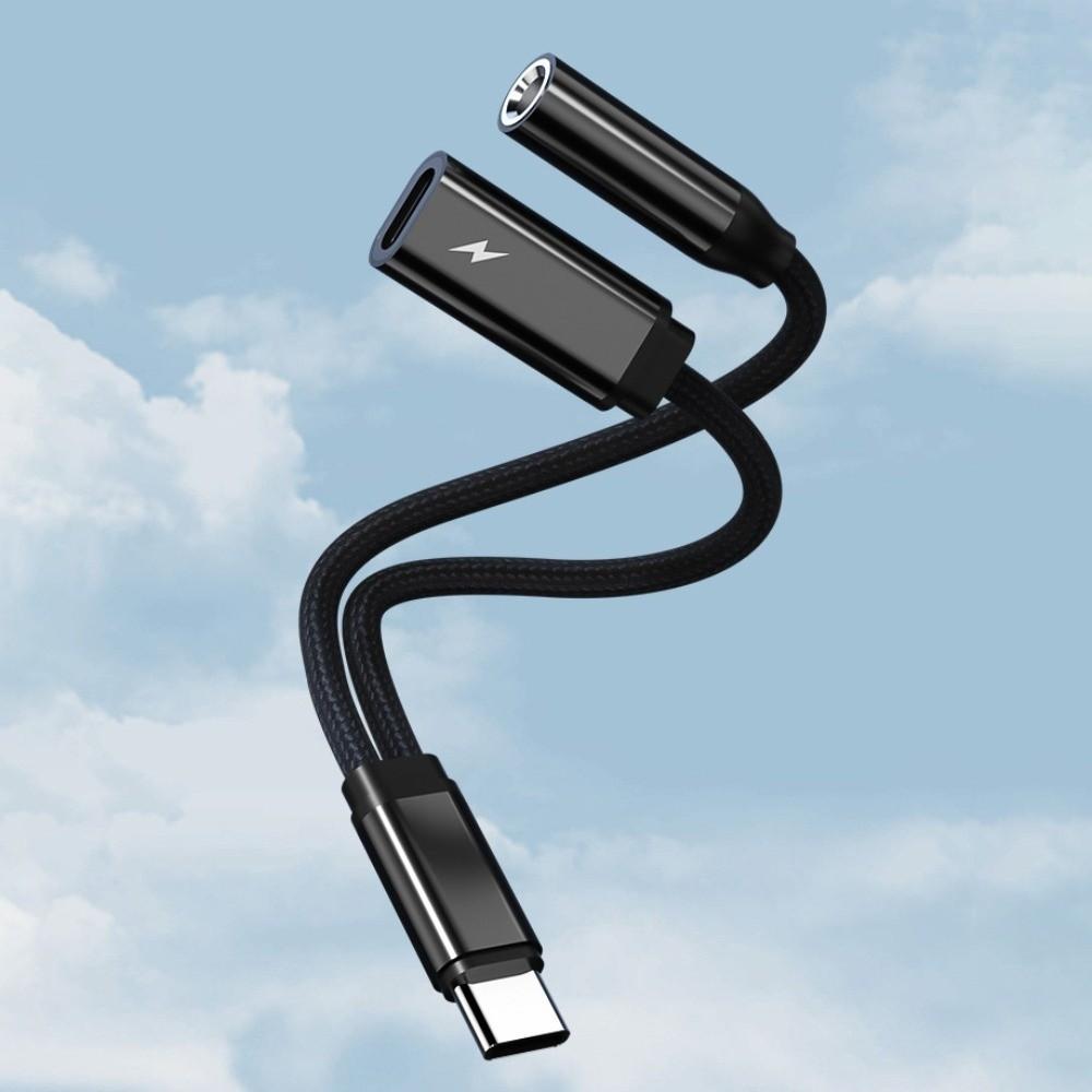 Universal 2 in 1 USB C Splitter PD 60W Type-C To AUX Adapter USB C To 3.5mm Adapter Fast Charging
