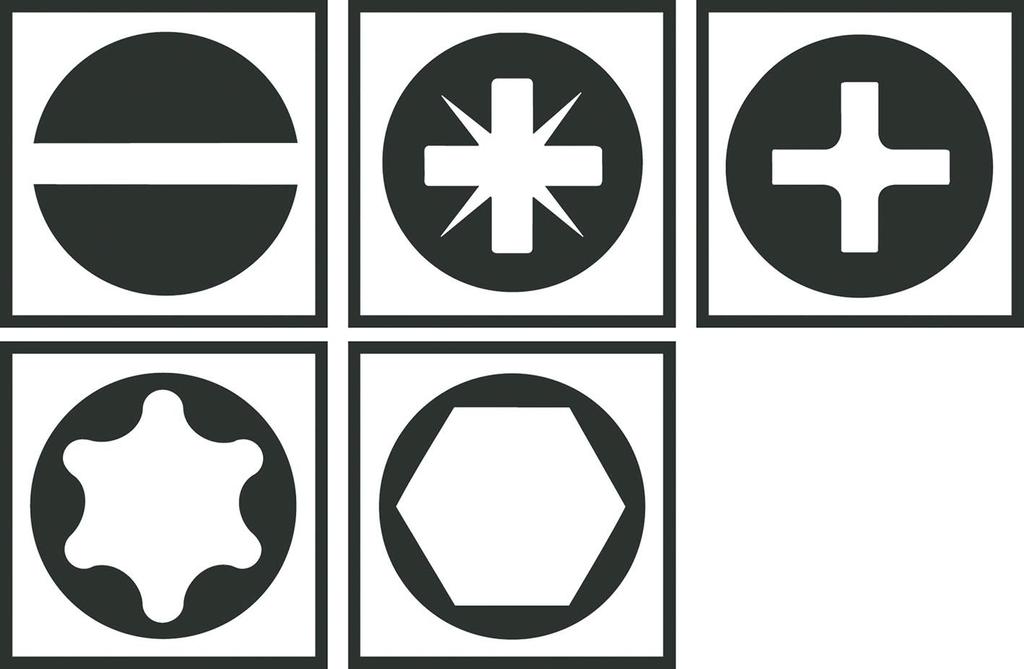Этот набор из 6 наконечников (Крестовая Phillips, Pozidriv, Плоская, Torx, Шестигранная, Торцевая) может закручивать большинство винтов.