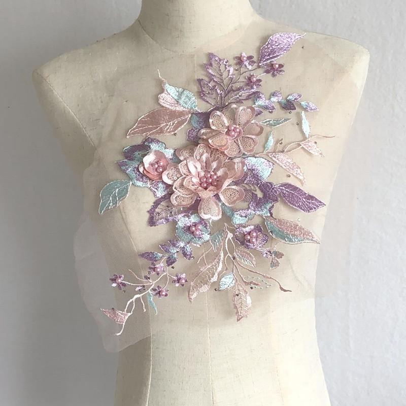 Трехмерные пайетки Цветочные бусины Сетка Пряжа Вышивка Тканевая наклейка Патч Дыра Украшения для одежды Аксессуары Ручная работа Сделай сам
