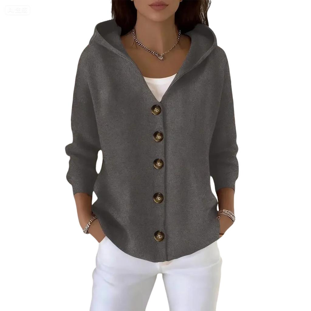 Женская мода однотонная с длинным рукавом на пуговицах с капюшоном повседневная вязаная куртка для работы