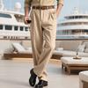 Весенне-осенние льняные мужские повседневные брюки свободного кроя, дышащие, простые, в полоску, костюмные брюки