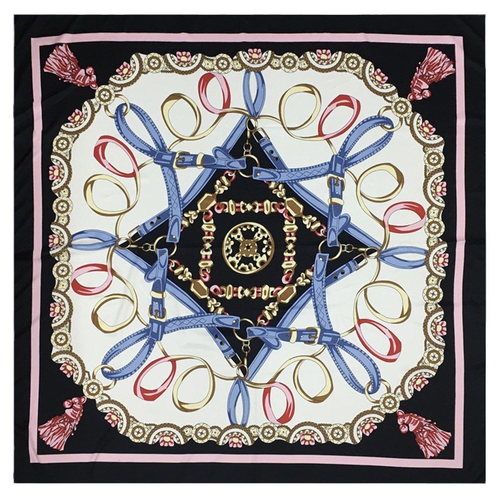 130*130см 100% Твиловый шелковый платок Женский Роскошный Принт Цепи Пляжная шаль Квадратная Бандана Косынка Femme Fourlard Echarpes Stoles