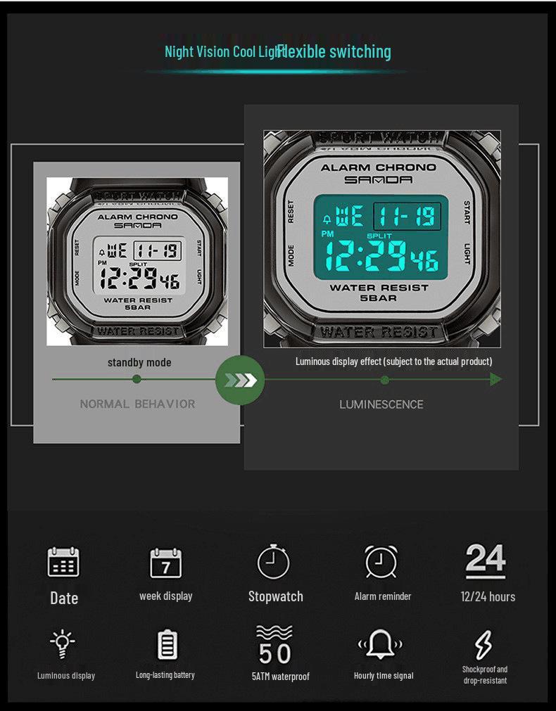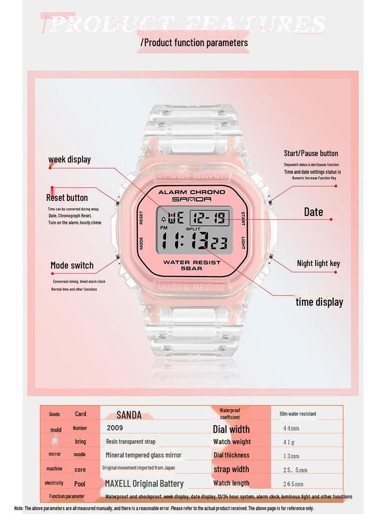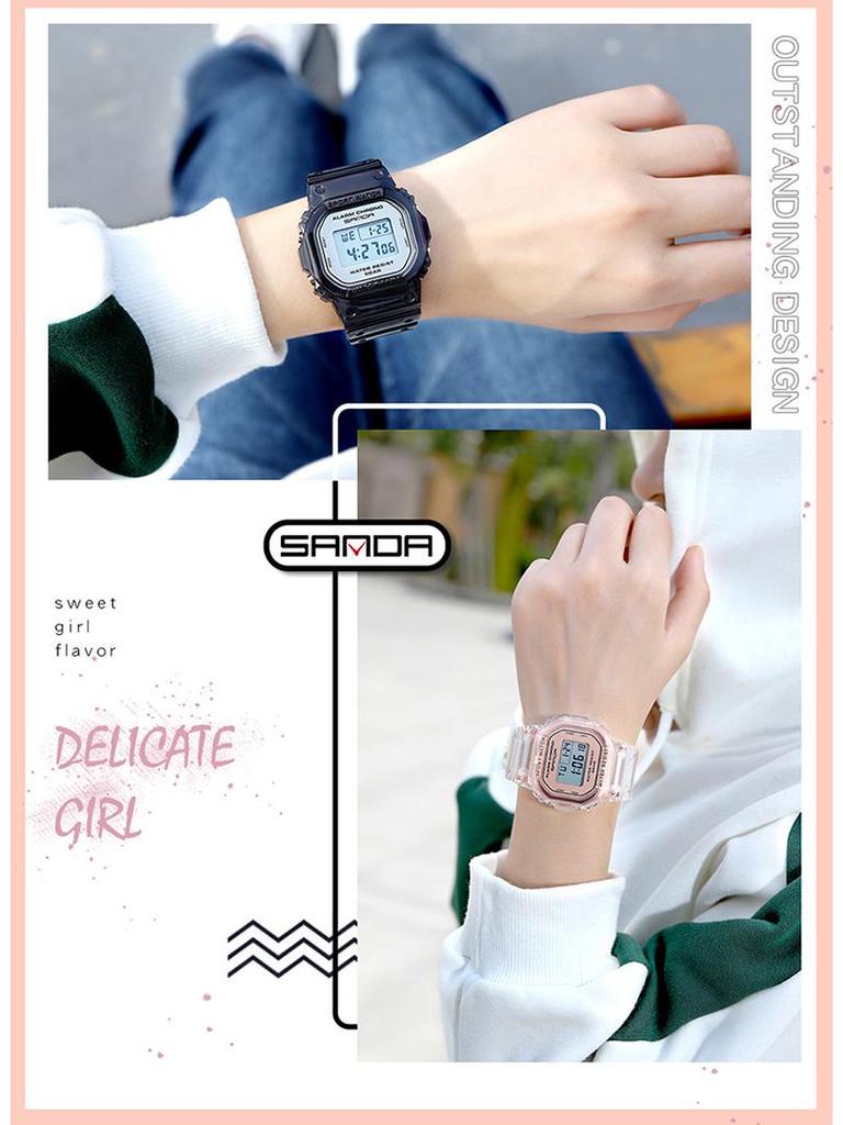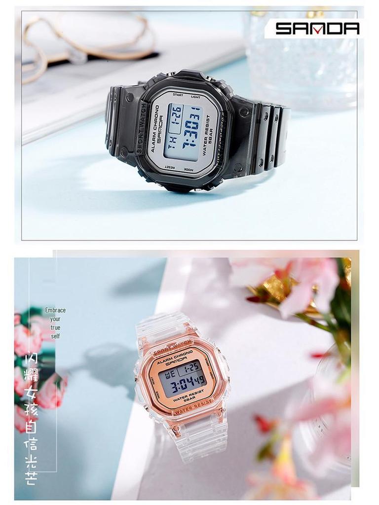Sanda Прозрачный ремешок Многофункциональные Светящиеся Водонепроницаемые Спортивные часы