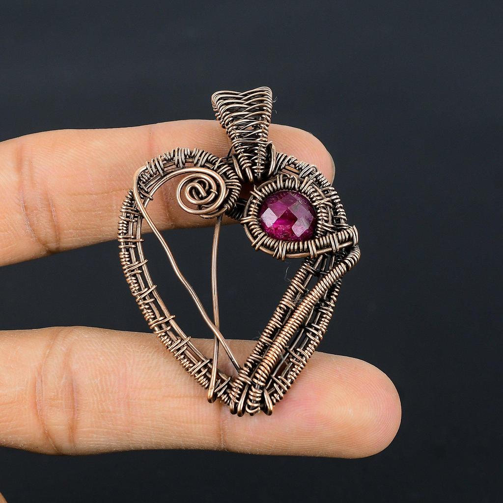 Рубиновый кулон Ювелирные изделия из драгоценных камней, Кулон ручной работы, обернутый медной проволокой 999 пробы, Ювелирные изделия новейшего дизайна