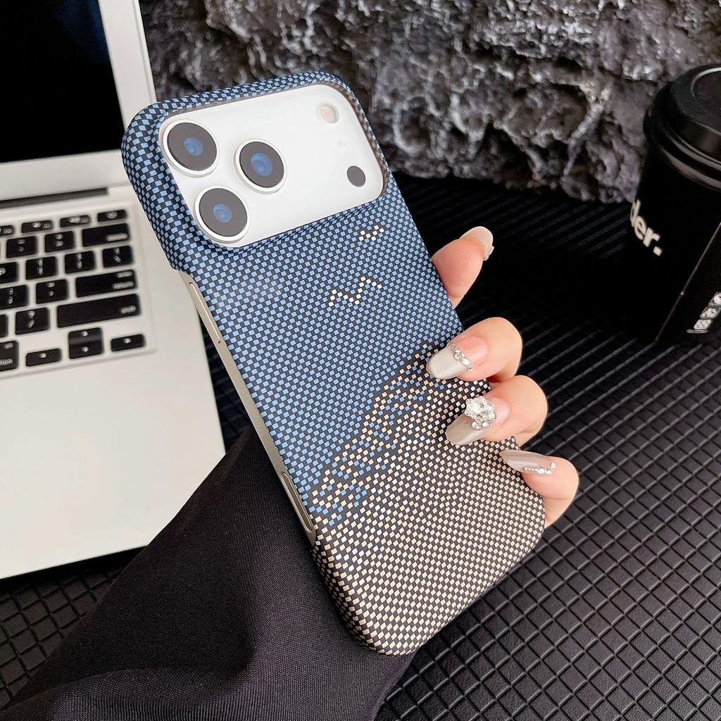 Применимо к Apple 17proMax Чехол для мобильного телефона с полузакрытой задней крышкой, с рисунком из углеродного волокна, iPhone 16 Кевларовый матовый 15 Защитный чехол