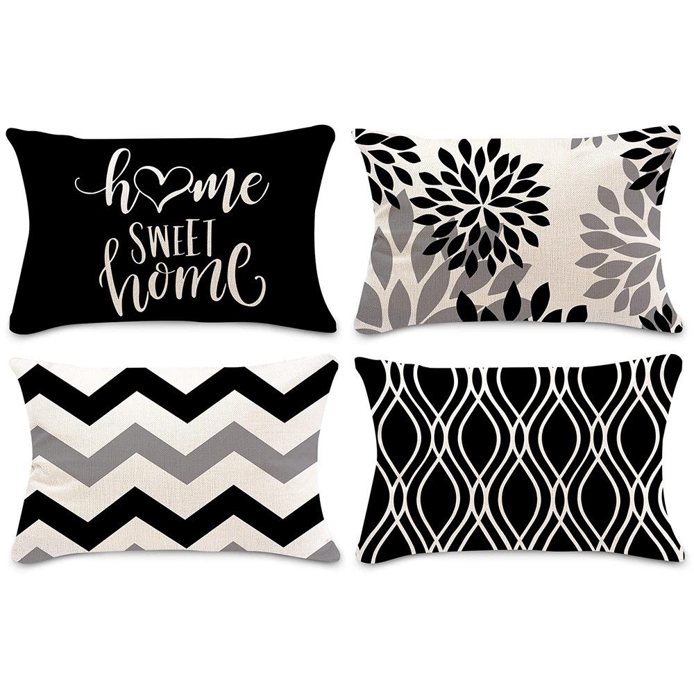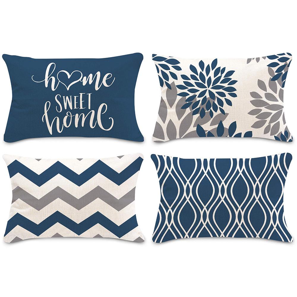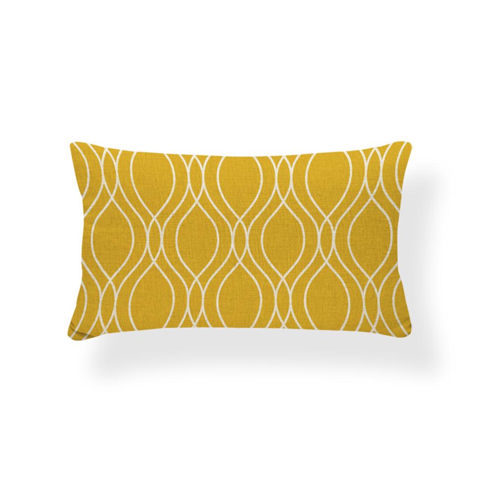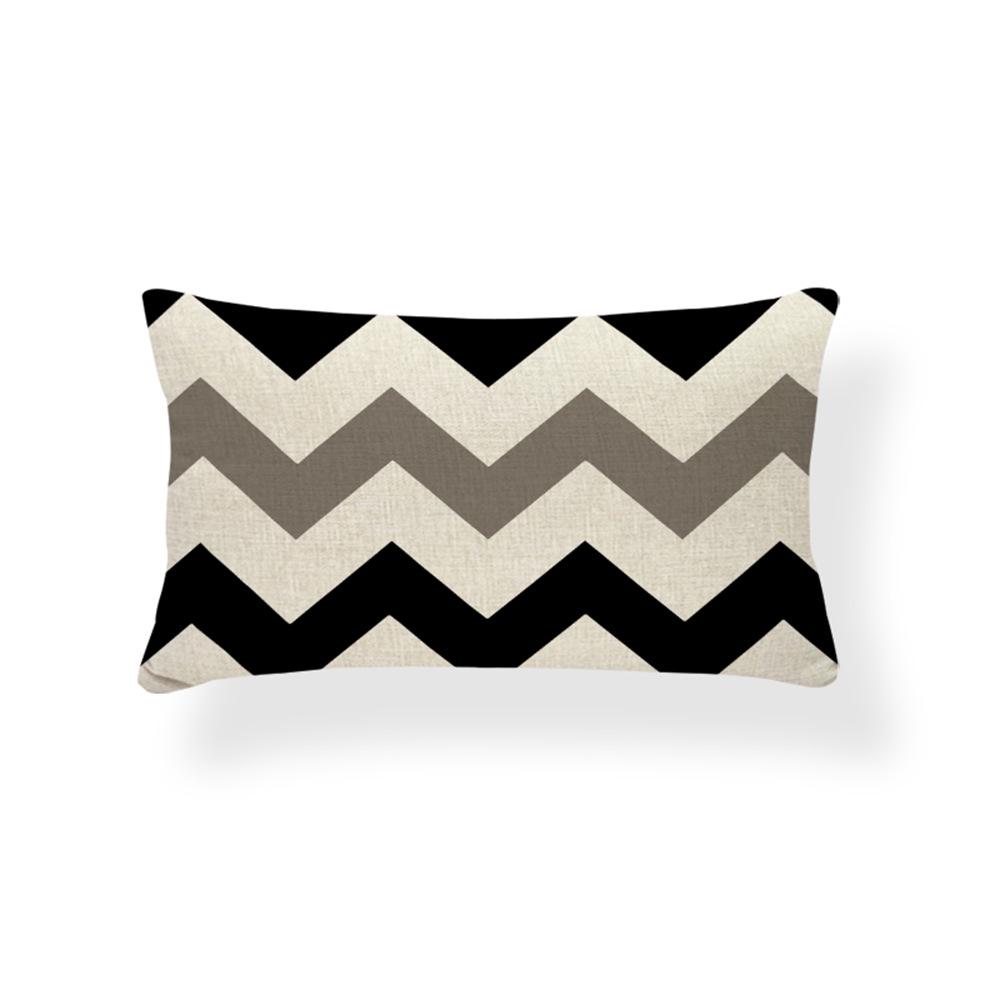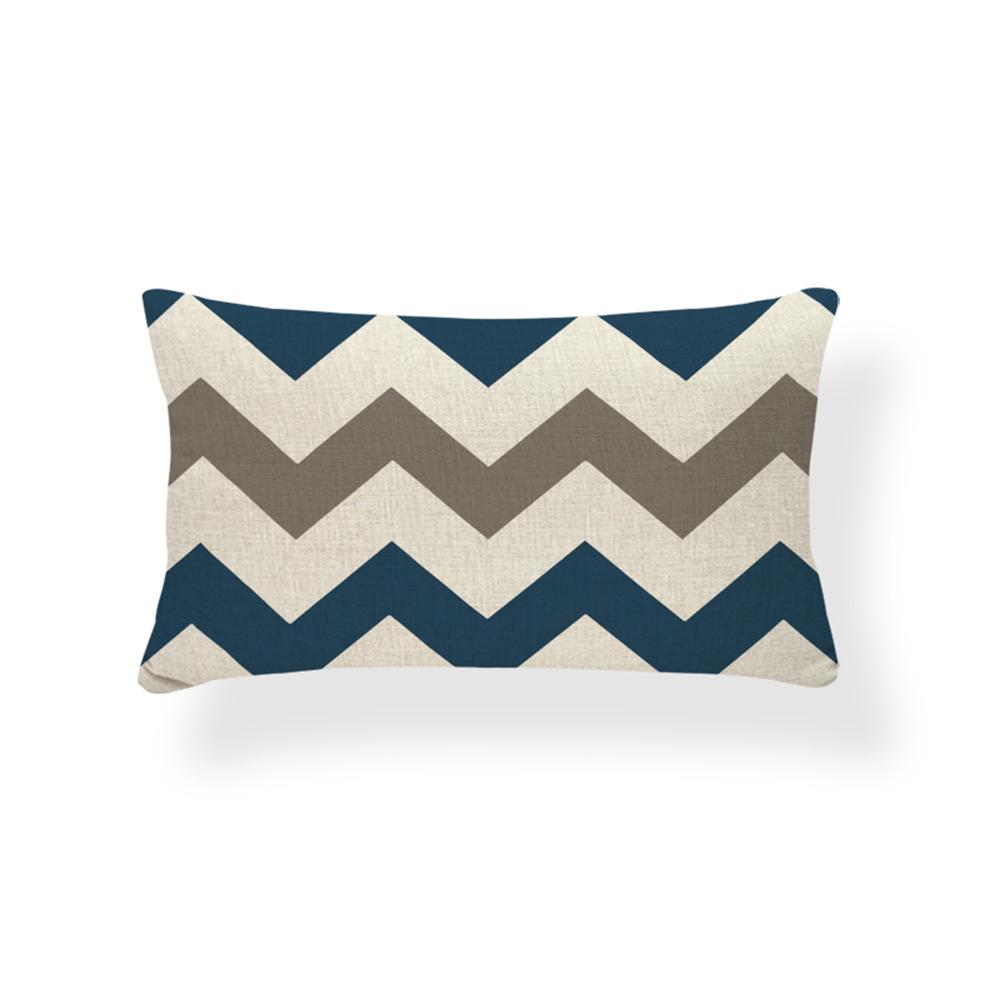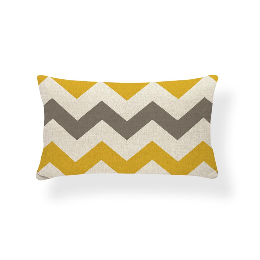 Геометрическая льняная наволочка в озерно-голубом, желтом, черном и белом цветах - Декор дивана для гостиной в стиле фермерского дома
