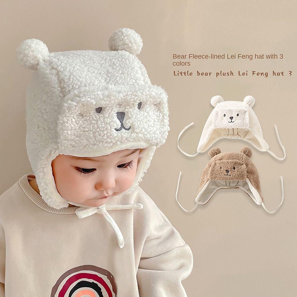 Чепчик для новорожденных с ушками для новорожденных от 0 до 8 месяцев, утепленные шапки с медведем, зимняя детская шапка для девочек и мальчиков
