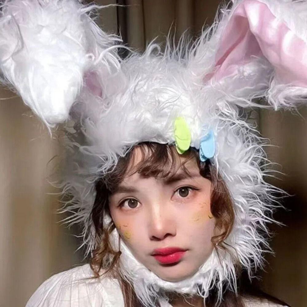 Кавайная шапка с кроличьими ушками, грелка для головы в виде кролика, зимний головной убор, реквизит для косплея