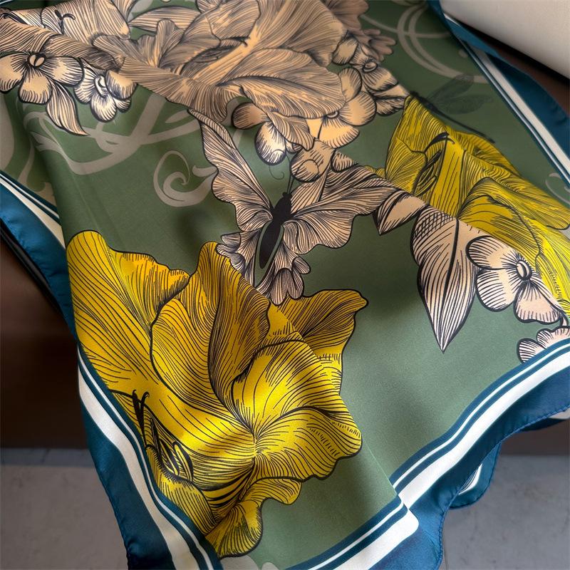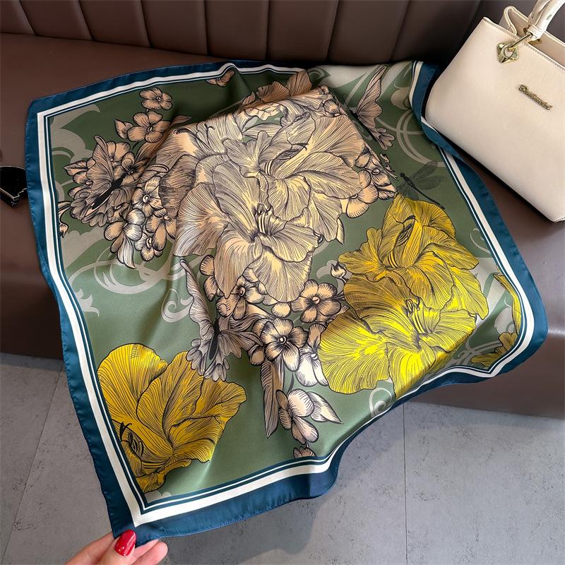 Роскошный винтажный дизайн 70*70 см Принт Шелковый квадратный шарф Женский мягкий атласный ободок для волос Шейный платок Хиджаб Повязка на голову Фуляр Подарок Шарфы
