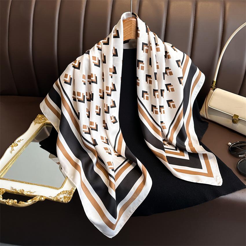 Новые модные шарфы 90*90 см Женский шаль с принтом Шелковый атлас Хиджаб Бандана Роскошный бренд Квадратный Женский платок Фуляр Шарф