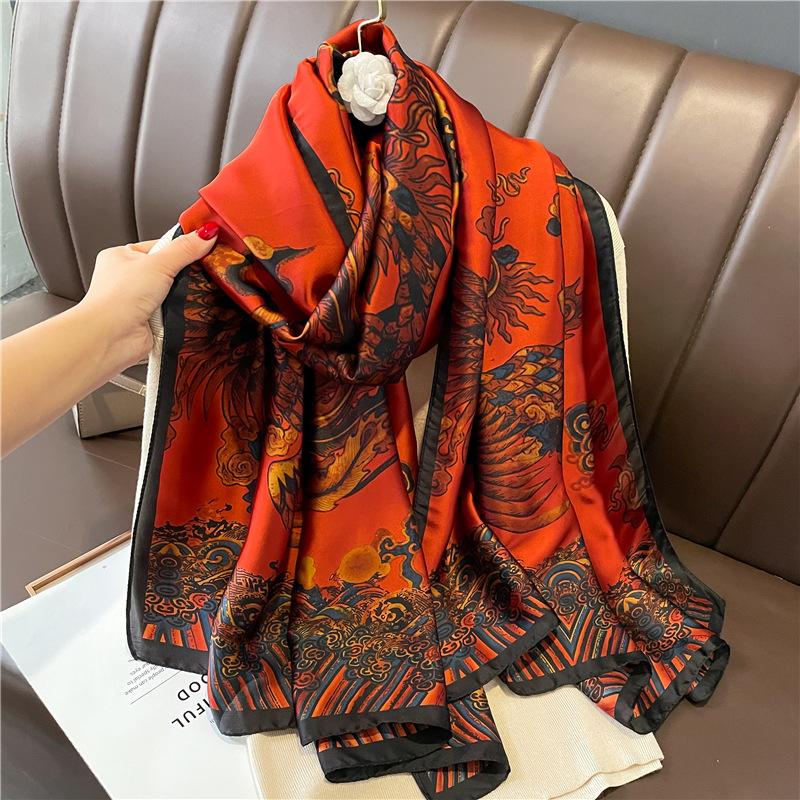 Роскошный шелковый шарф женский весенне-осенний модный с принтом элегантный шарфы винтажный платок бандана фуляр муфта дорожная шаль