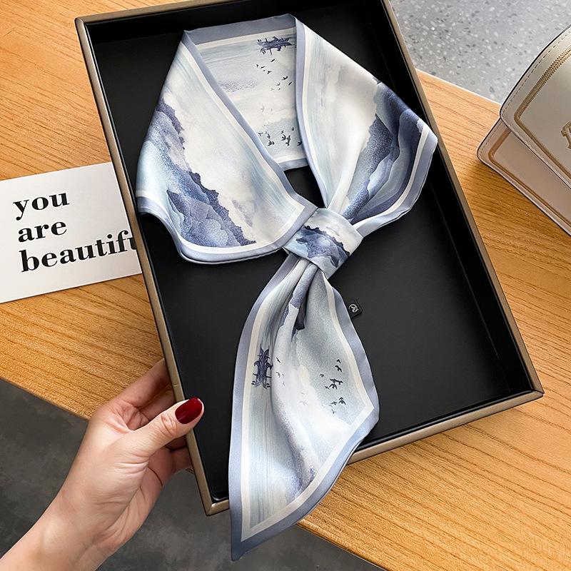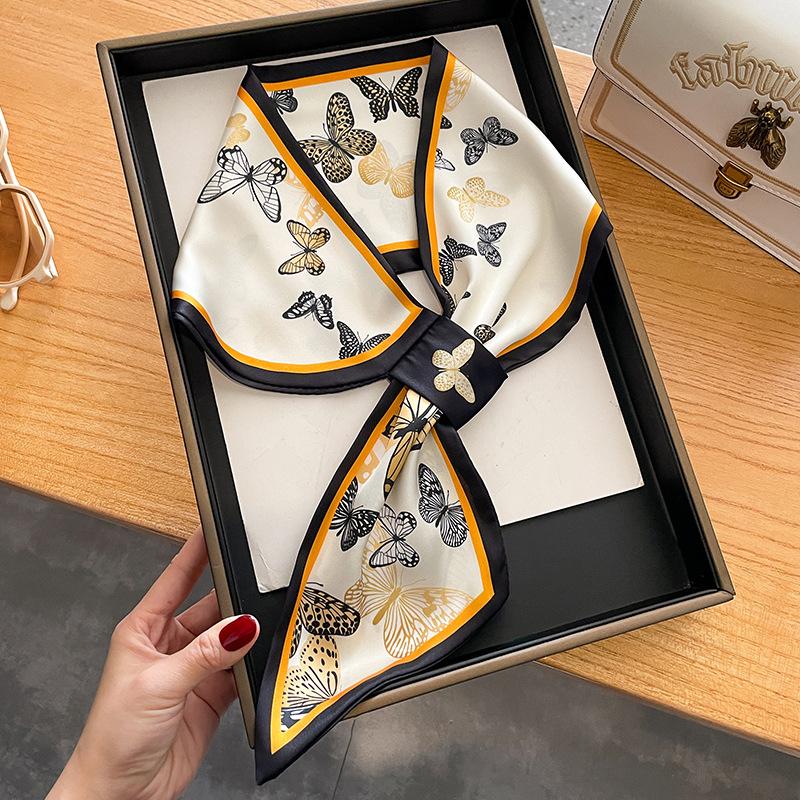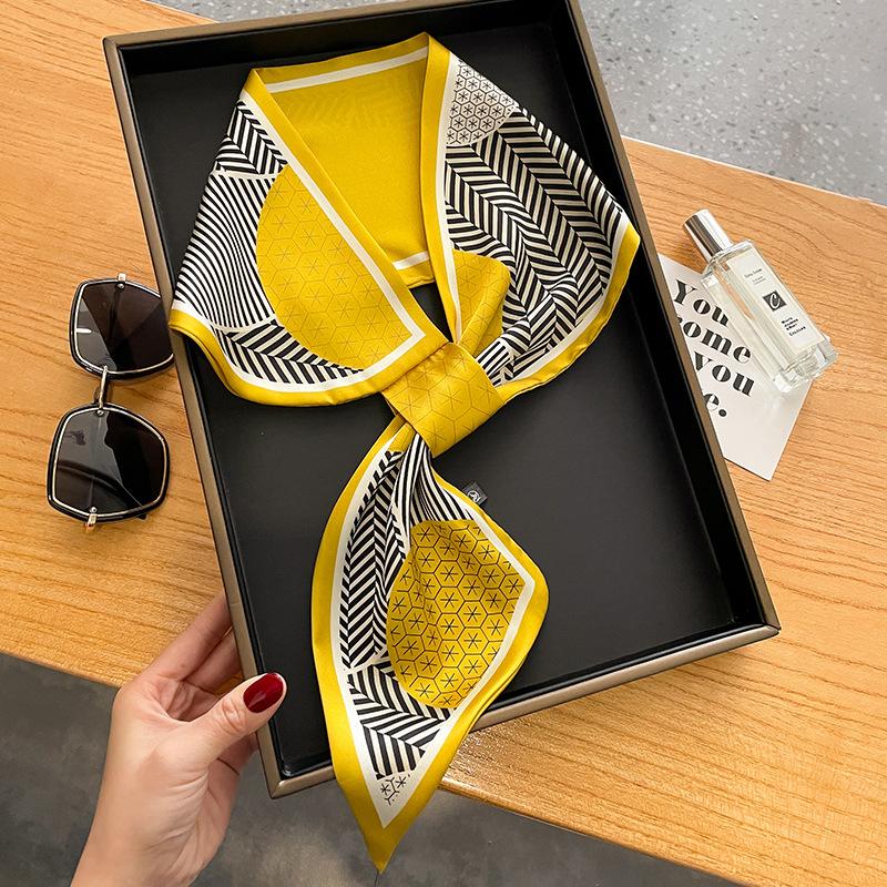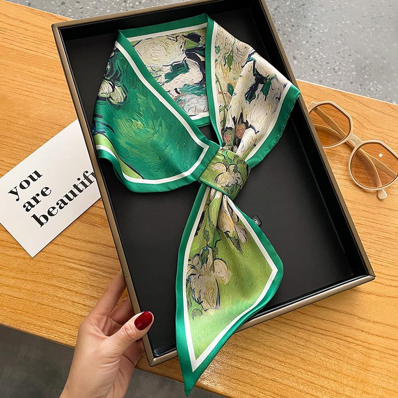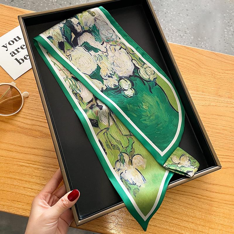 Длинный шейный платок Женская повязка на голову Модный платок для волос с цветочным принтом Шелковый атласный шейный платок 15x75см Элегантный платок для сумки для дам