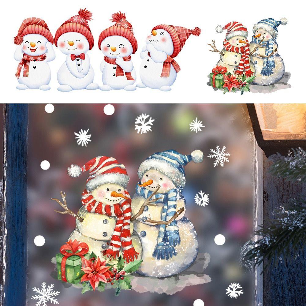 Мультяшный Снеговик Витринные Наклейки Снежинка Подарочная Коробка Рождество Статическая Наклейка Рождество