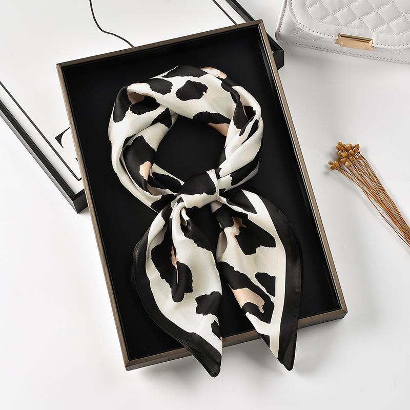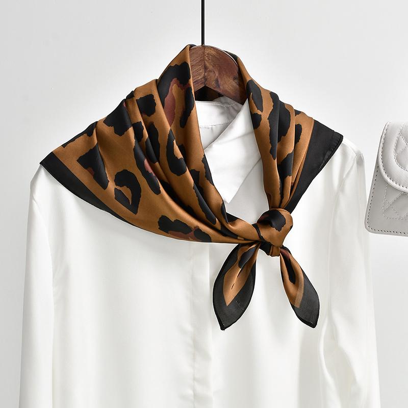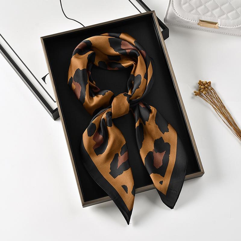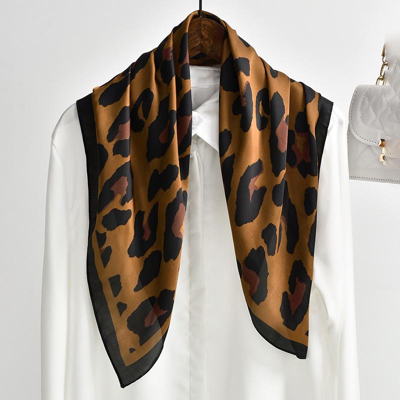 Ретро Леопардовый Квадратный Шарф Принт Шелковый Шарф Для Женщин Имитация Шелка Модный Универсальный Головной Убор Аксессуары Для Сумки Одежда 70*70см