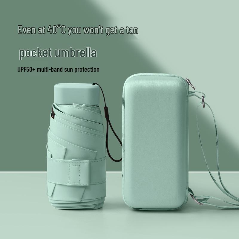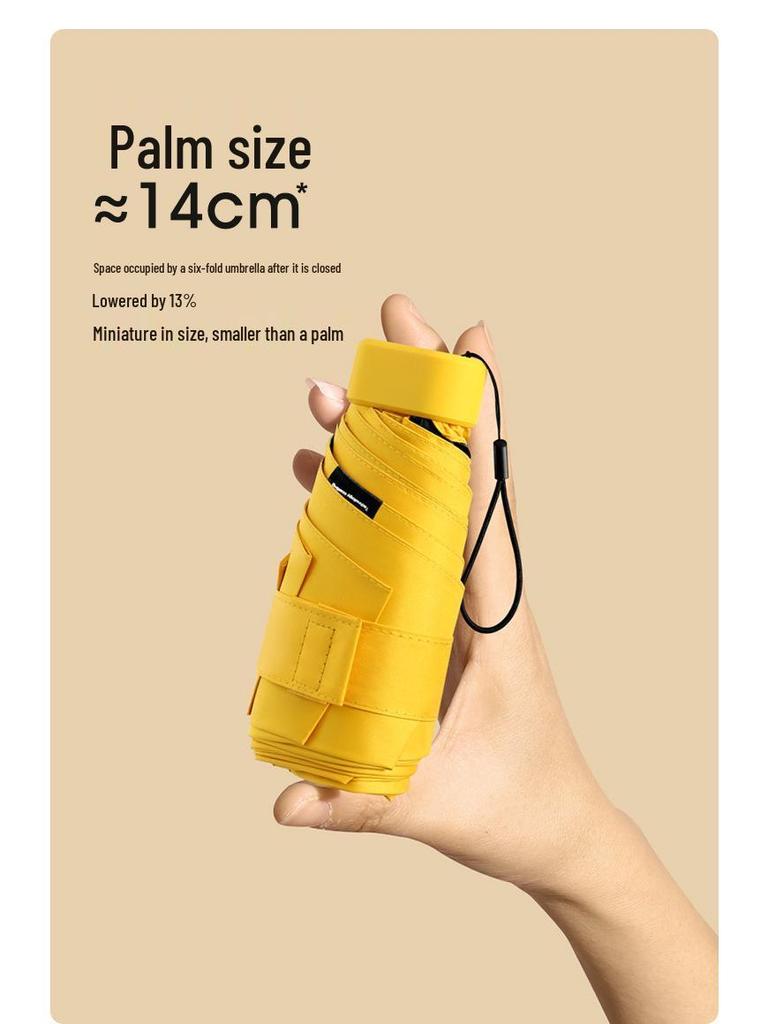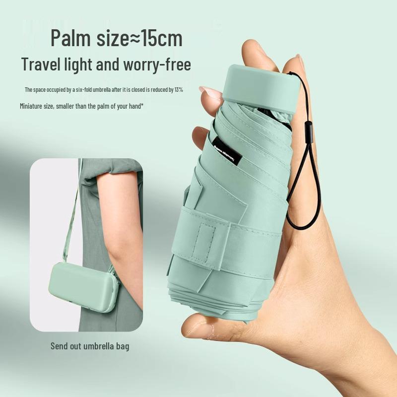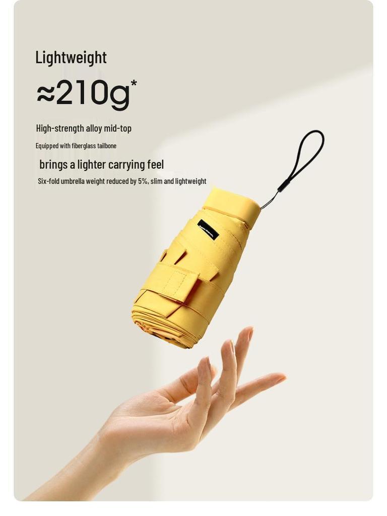 Женский шестисекционный мини-зонт от солнца с защитой от УФ-лучей - Настраиваемый держатель для карт, Зонт от дождя или солнца