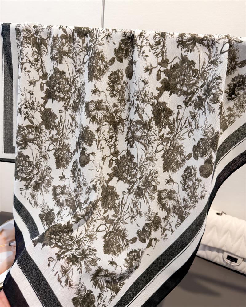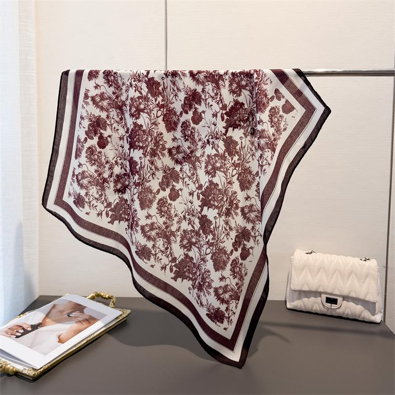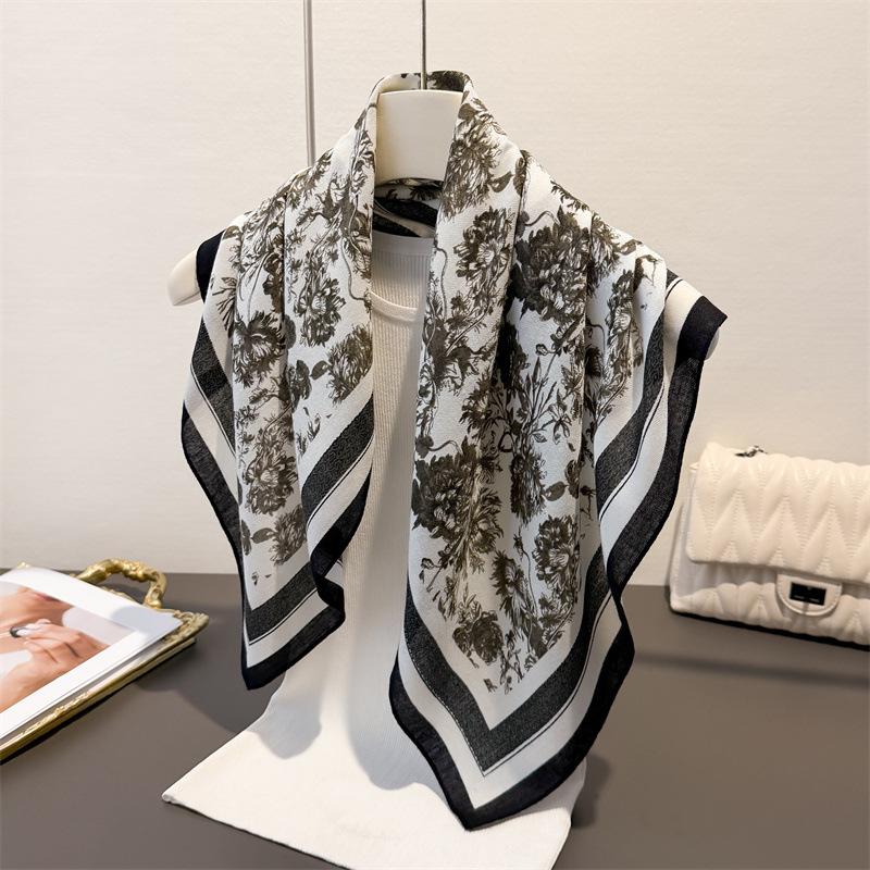 Роскошный квадратный шарф с цветочным принтом Женский Хлопково-льняной на ощупь Повязка на голову Шейный платок Галстук Женская Повязка на голову Фуляр