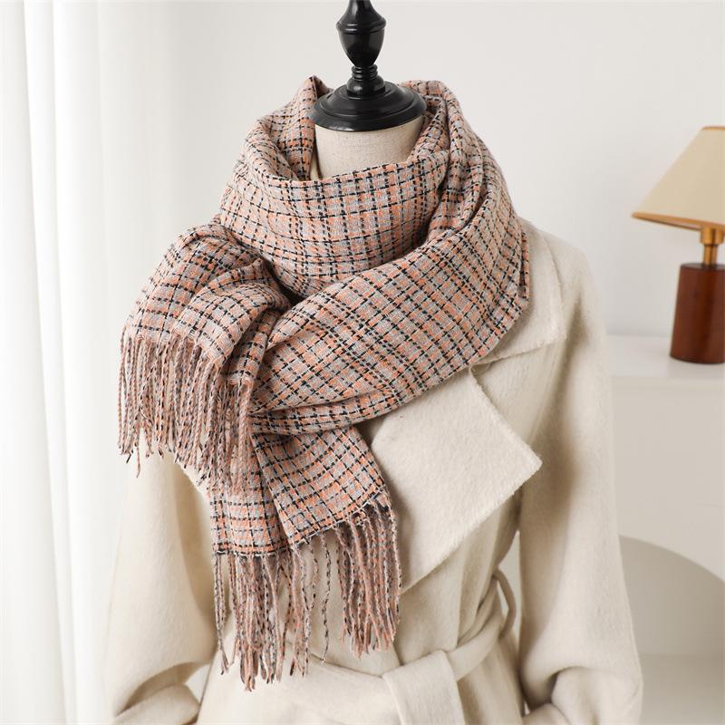 Полосатая клетчатая зимняя женская шаль из имитации кашемира, толстая теплая пашмина, шаль, накидка с кисточками, пончо, стола, эшарп