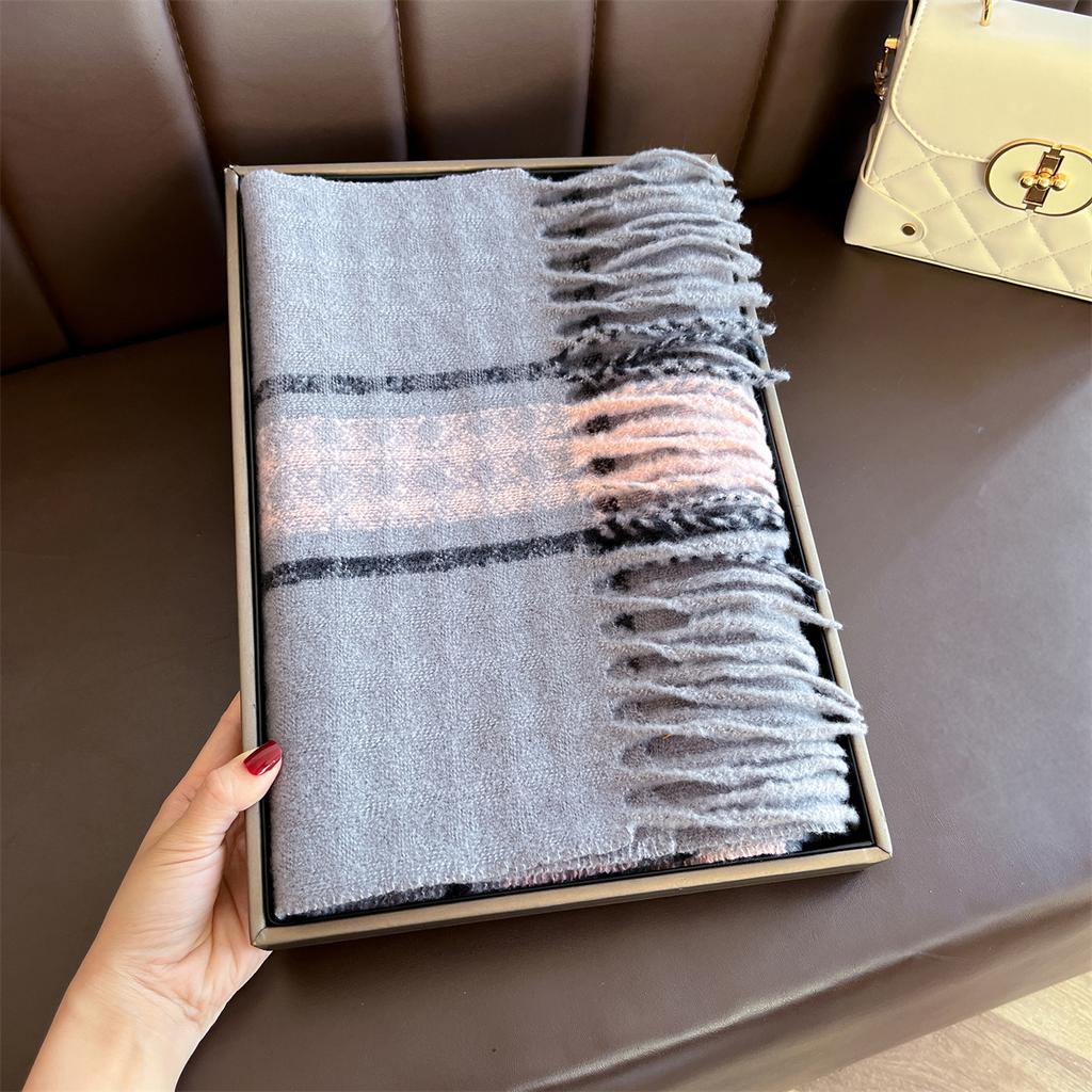Зимний женский шарф Толстый Теплый Кисточки Шали Пашмина Полоска Дизайнерский Шейный платок Кашемир Леди Роскошный Буфанда