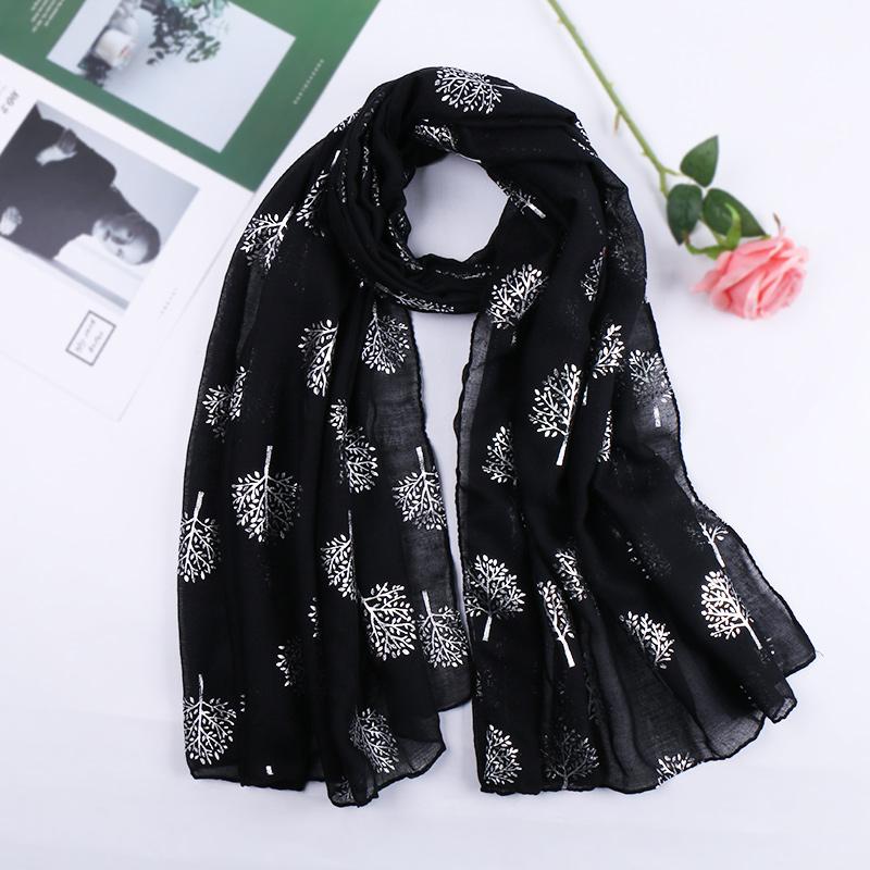 Блестящий серебристый шарф с деревом Женский Роскошный Трикотажный Хлопок Мерцающий Хиджаб Большого Размера Блестящая Шаль Шарфы Мусульманский Хиджаб Исламский Головной Платок