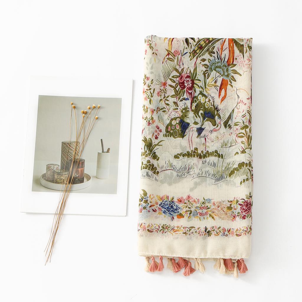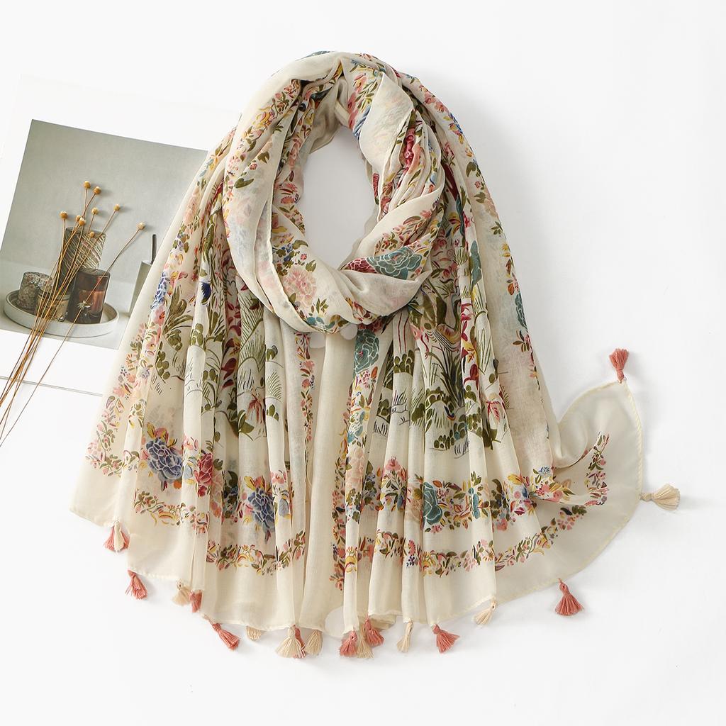 Мусульманский этнический стиль печатная шаль со специальными кистями неровная женская Испания оригинальный хиджаб мода цветочный принт шарф обертывание для волос