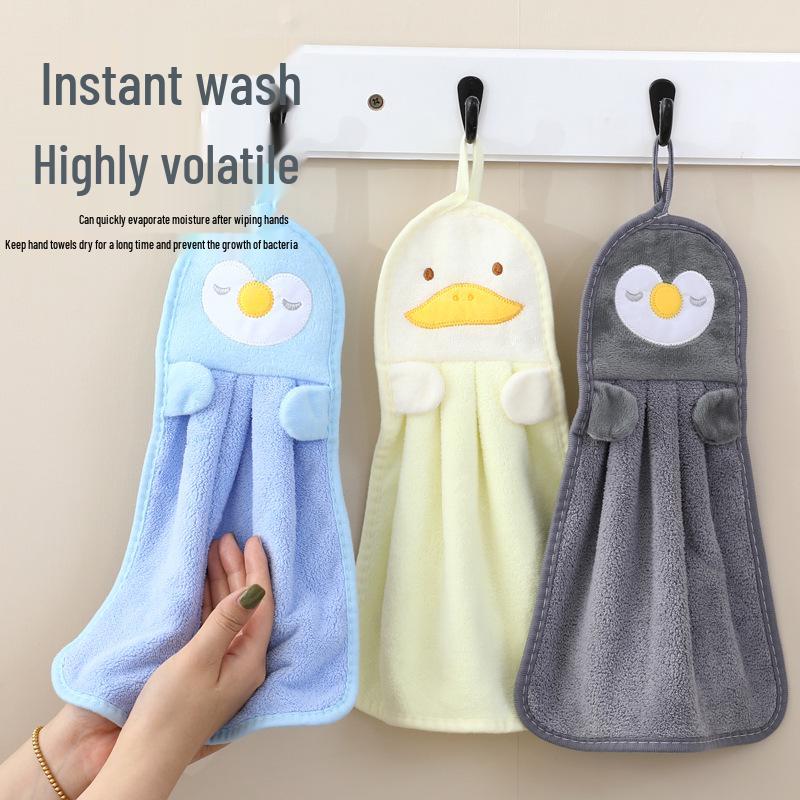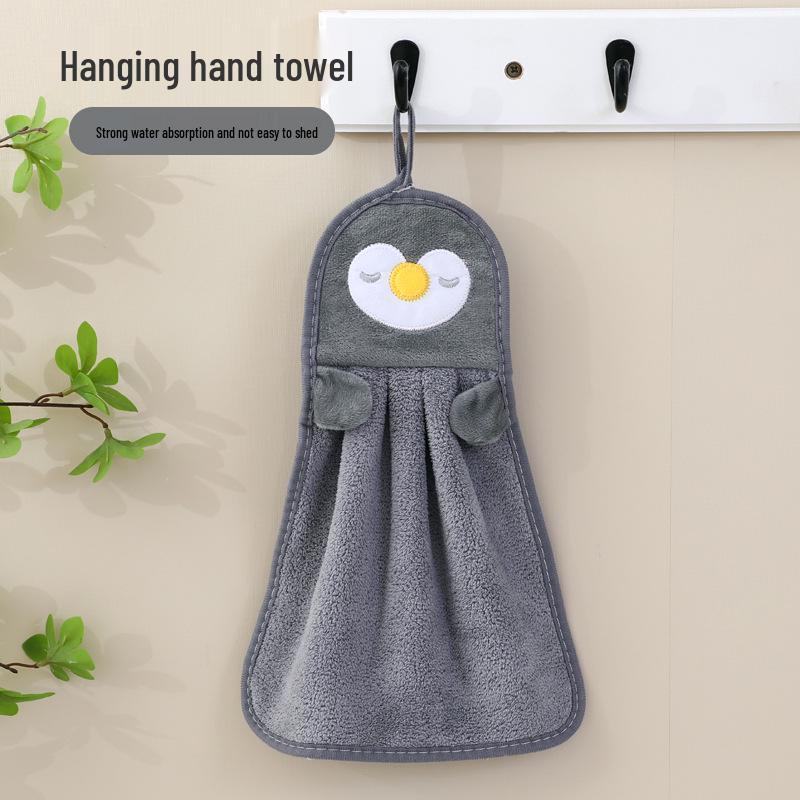 Милое мультяшное полотенце для рук из кораллового флиса - Плотное, быстросохнущее, с петелькой для подвешивания и без запаха