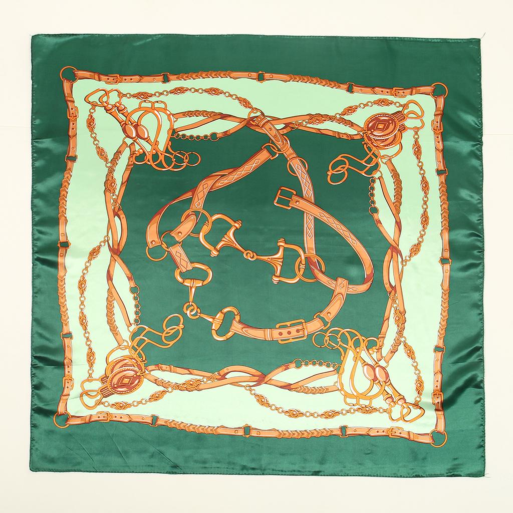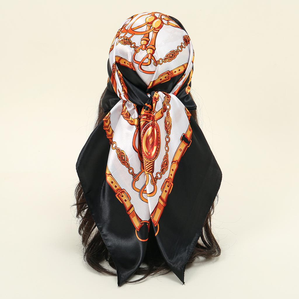 90*90см Квадратный шарф из атласного шелка Женский модный платок на шею, голову/для волос Бандана Носовой платок Принт в виде цепей Головной платок