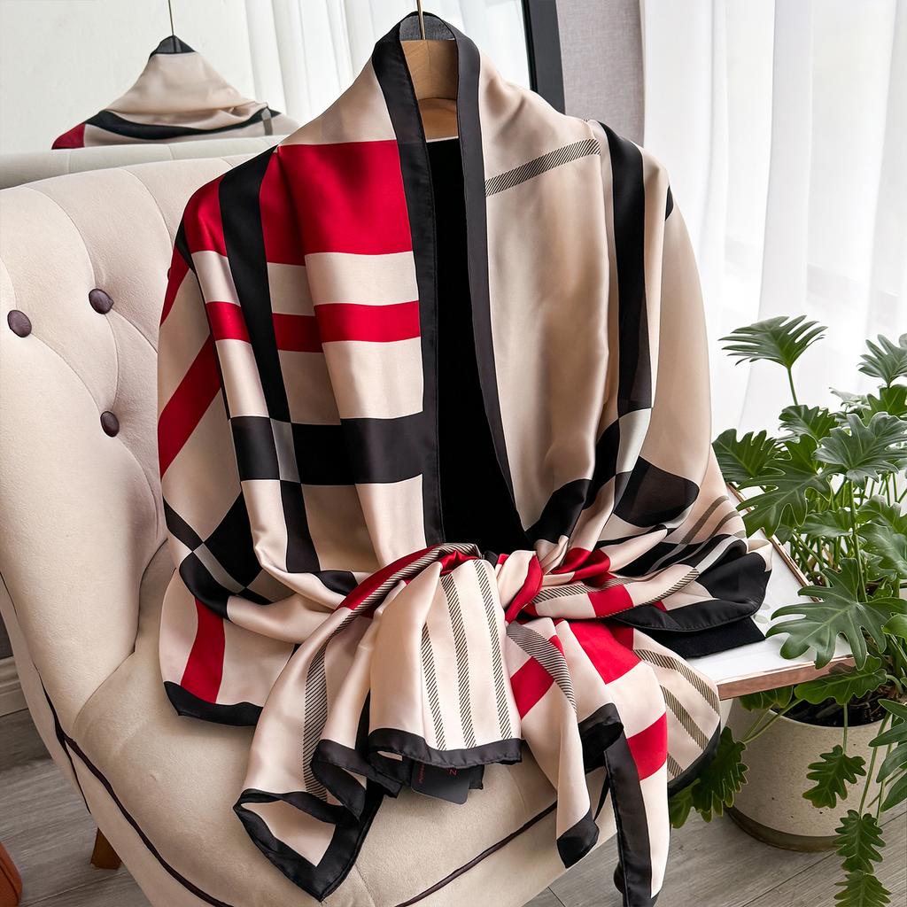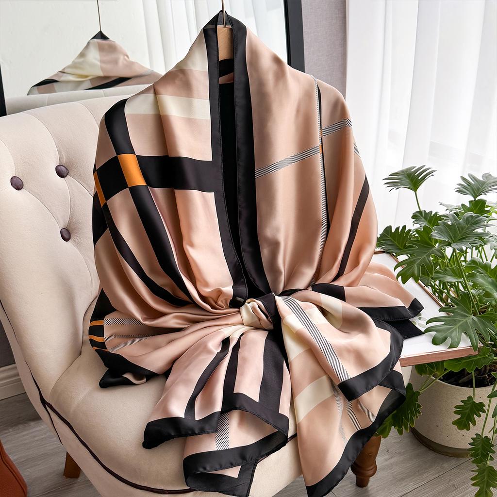 Новый геометрический дизайн, большой шелковый мягкий шарф, женский стильный принт, длинный платок, летняя защита от солнца, элегантная дорожная накидка