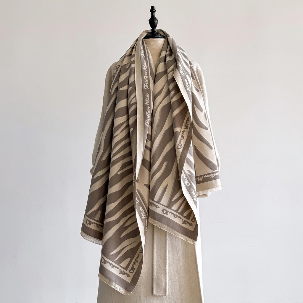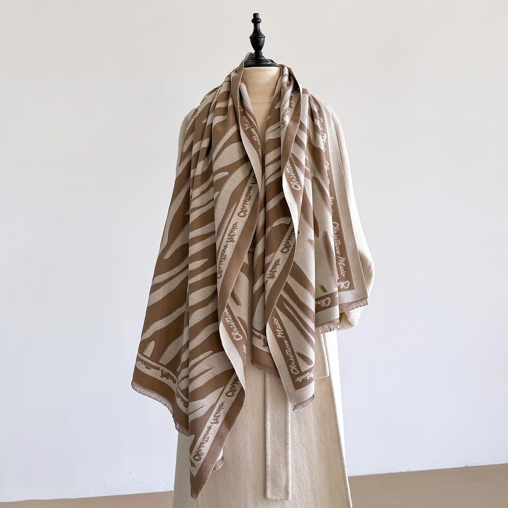 Роскошная кашемировая шаль Новая полоска Двусторонняя Мягкая Теплая Бахрома Пашмина Шарф Зимняя Ветронепродуваемая Защищающая от холода Накидка-одеяло для женщин