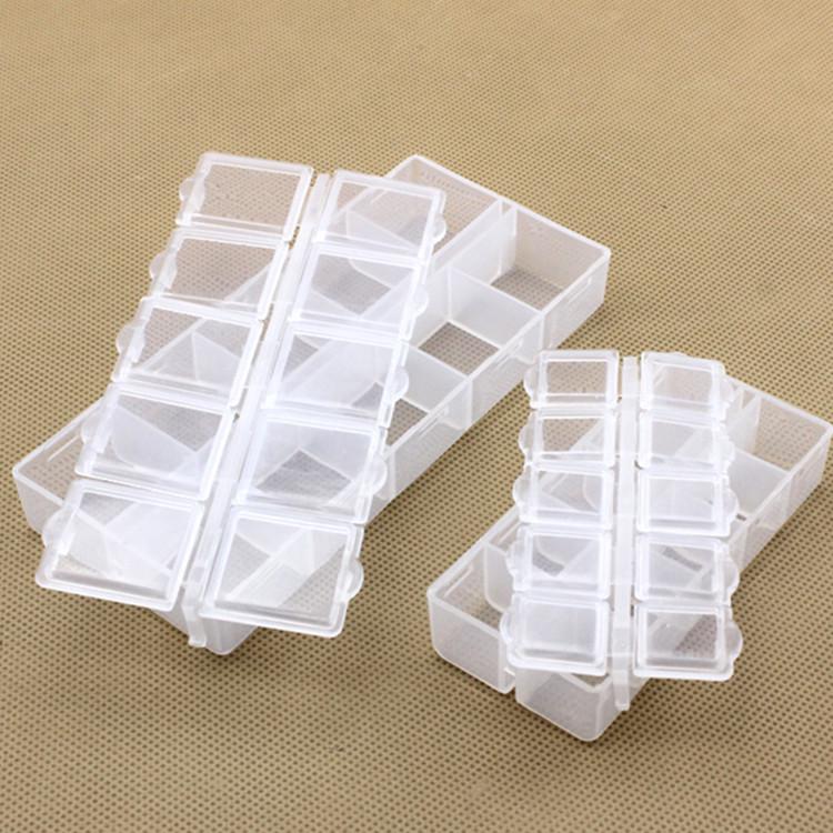 ПП Большая 10-секционная прозрачная квадратная коробка для хранения ювелирных изделий с крышкой