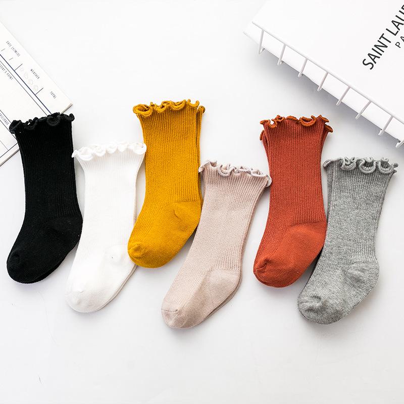 Весенне-осенние детские носки с оборкой для 0-3 лет - Хлопковые носки-гольфы для девочек