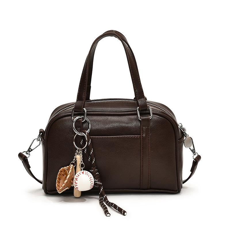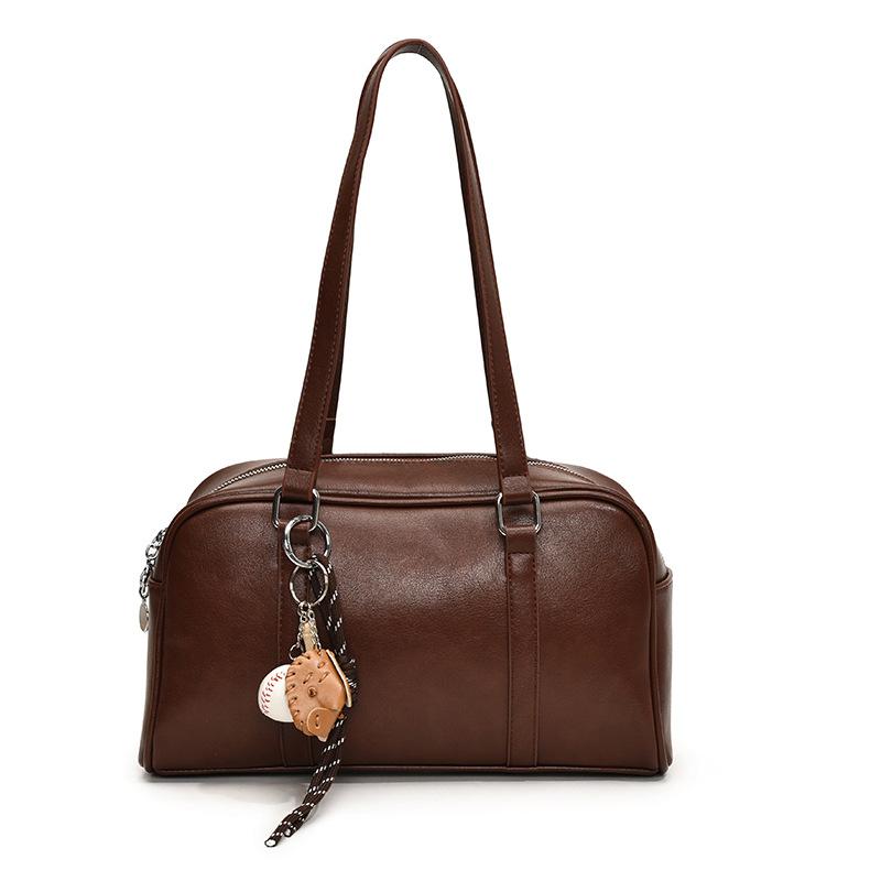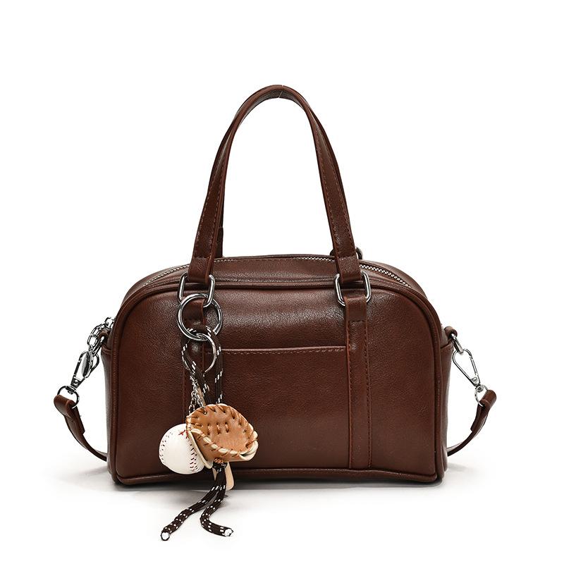- **Детали структурированной сумки-трансформера**: Имеет стильный структурированный силуэт сумки-сачел из ПУ материала, милый брелок (доступно с подвеской или без), и универсальные варианты переноски (на одно плечо, через плечо), излучающий ретро и игривое очарование. Несколько вариантов цвета (Кофе, Коричневый, Черный) с очарованием и вариациями размеров, удовлетворяющими разнообразным стилистическим предпочтениям.