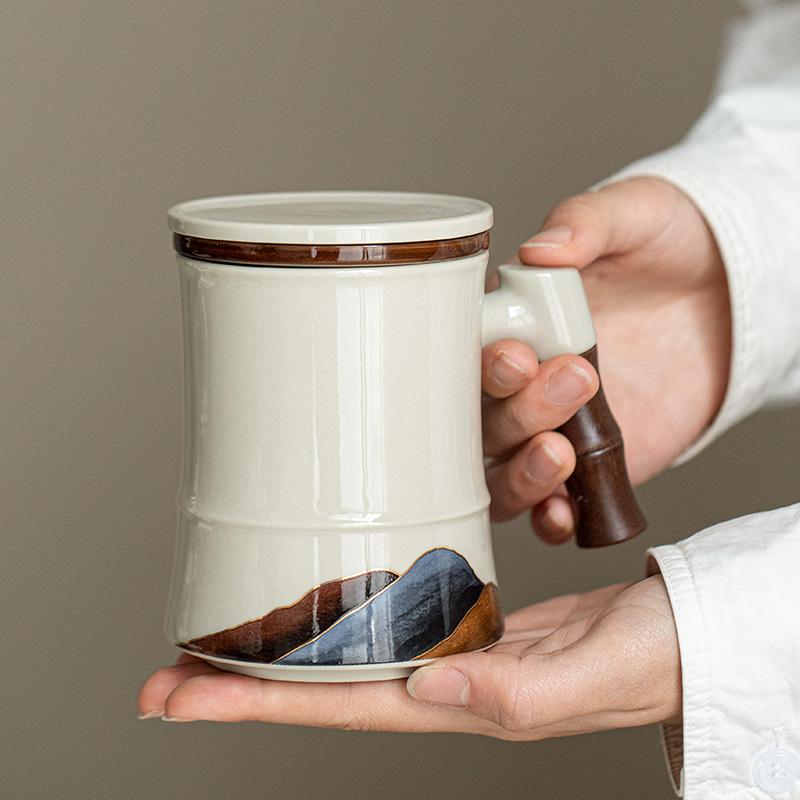 Tea cup ceramic with lid filter tea separation mug personal office water cup tea cup gift box