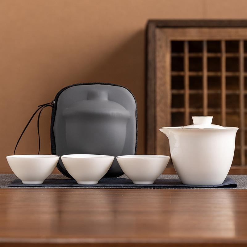 Высококлассный дорожный чайный набор из фарфора «бараний жир», чайник и три чашки, портативный набор, легкая роскошь, бизнес-сувениры, праздничные подарки